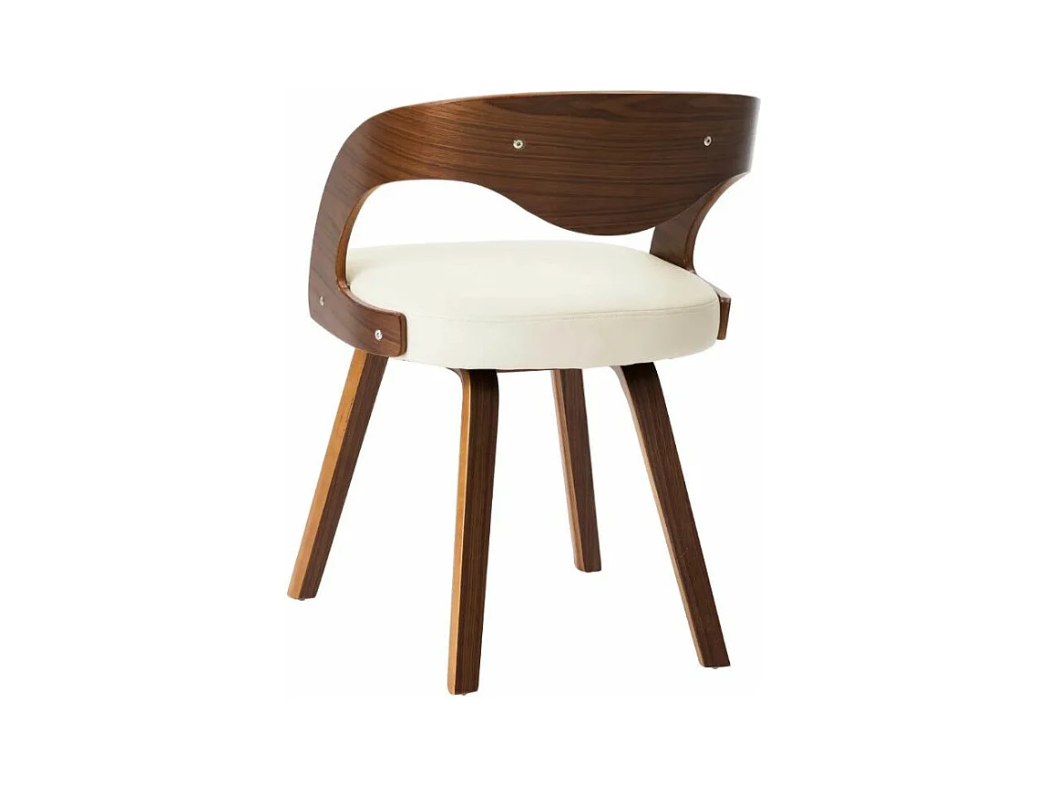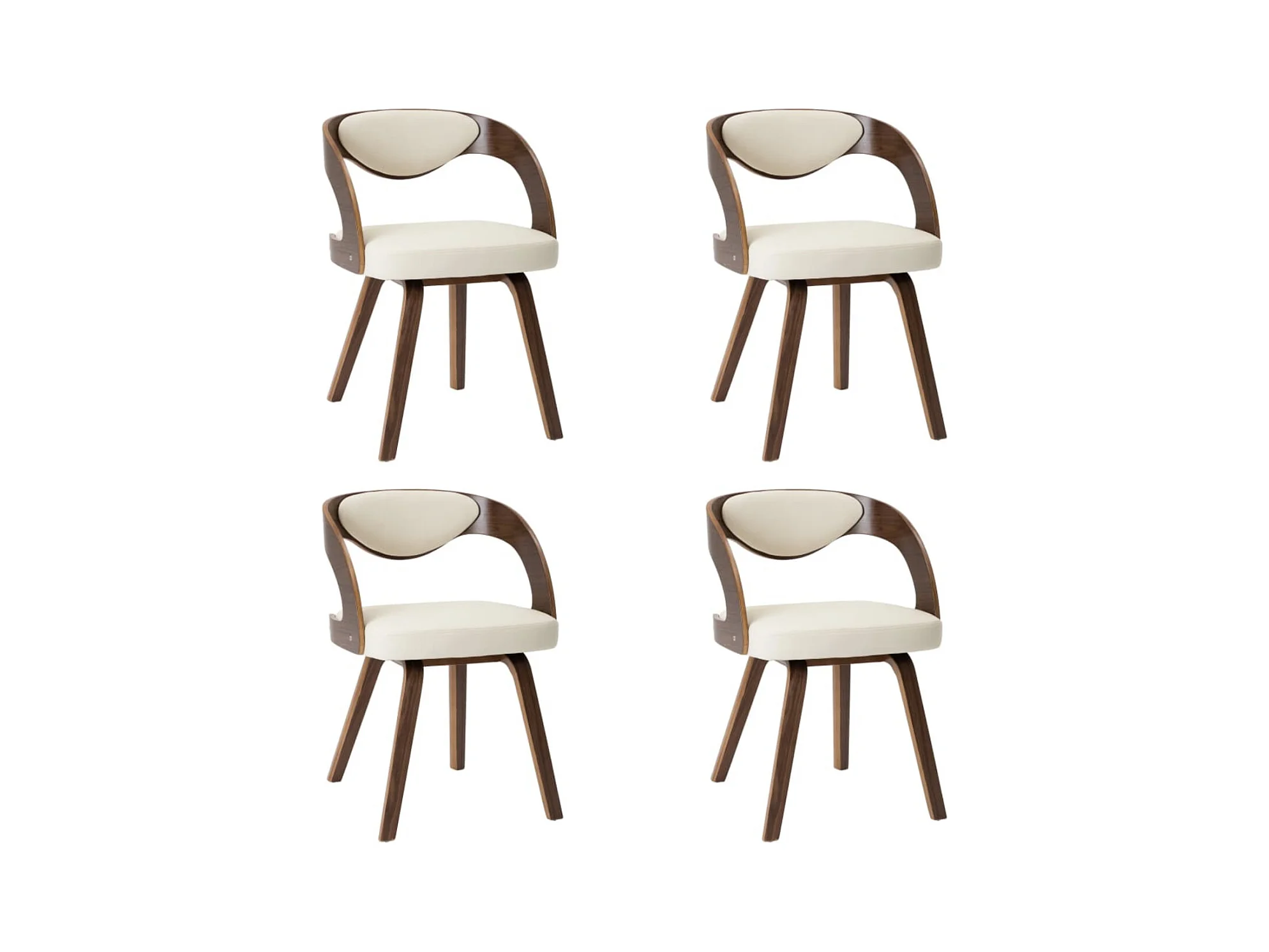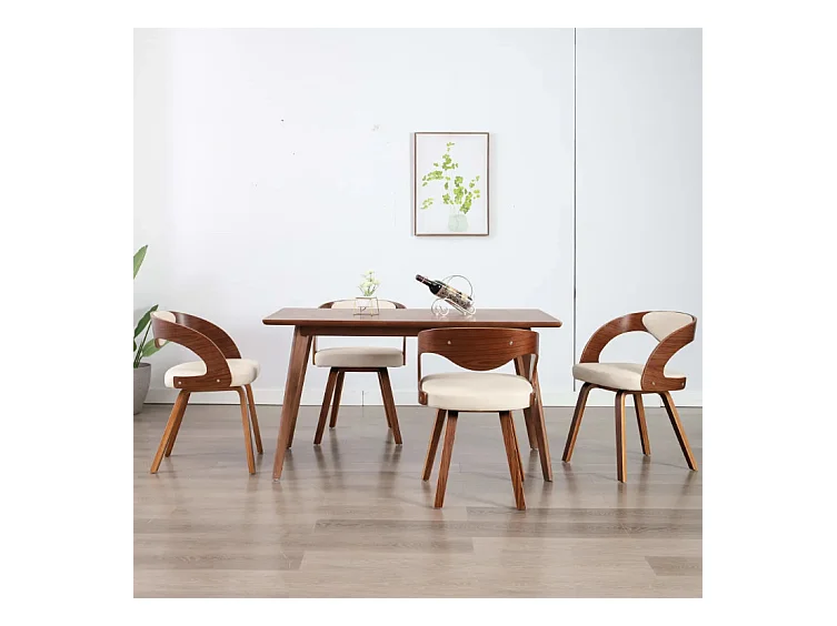 Eetkamerstoelen 4 st gebogen hout en kunstleer crèmekleurig