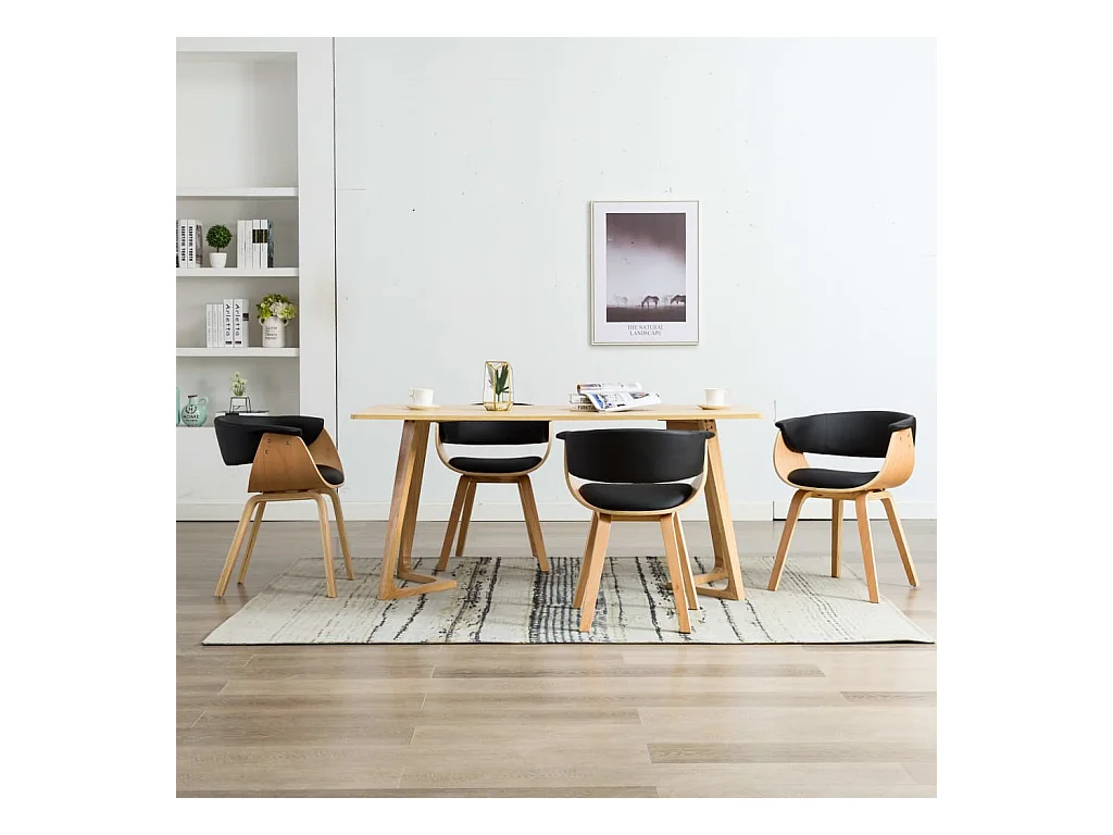 Eetkamerstoelen 4 st gebogen hout en kunstleer zwart