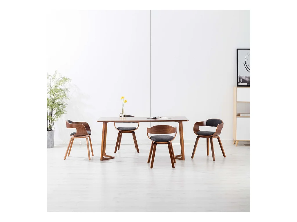 Eetkamerstoelen 4 st stof en gebogen hout donkergrijs