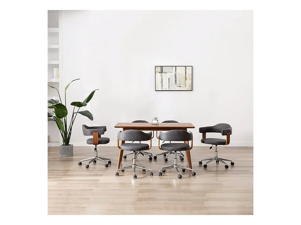 Eetkamerstoelen 6 st draaibaar gebogen hout en stof grijs