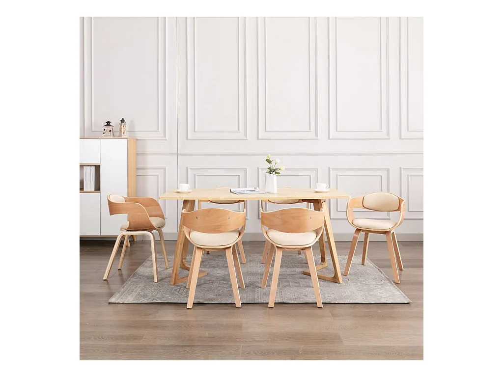 Eetkamerstoelen 6 st gebogen hout en kunstleer crème