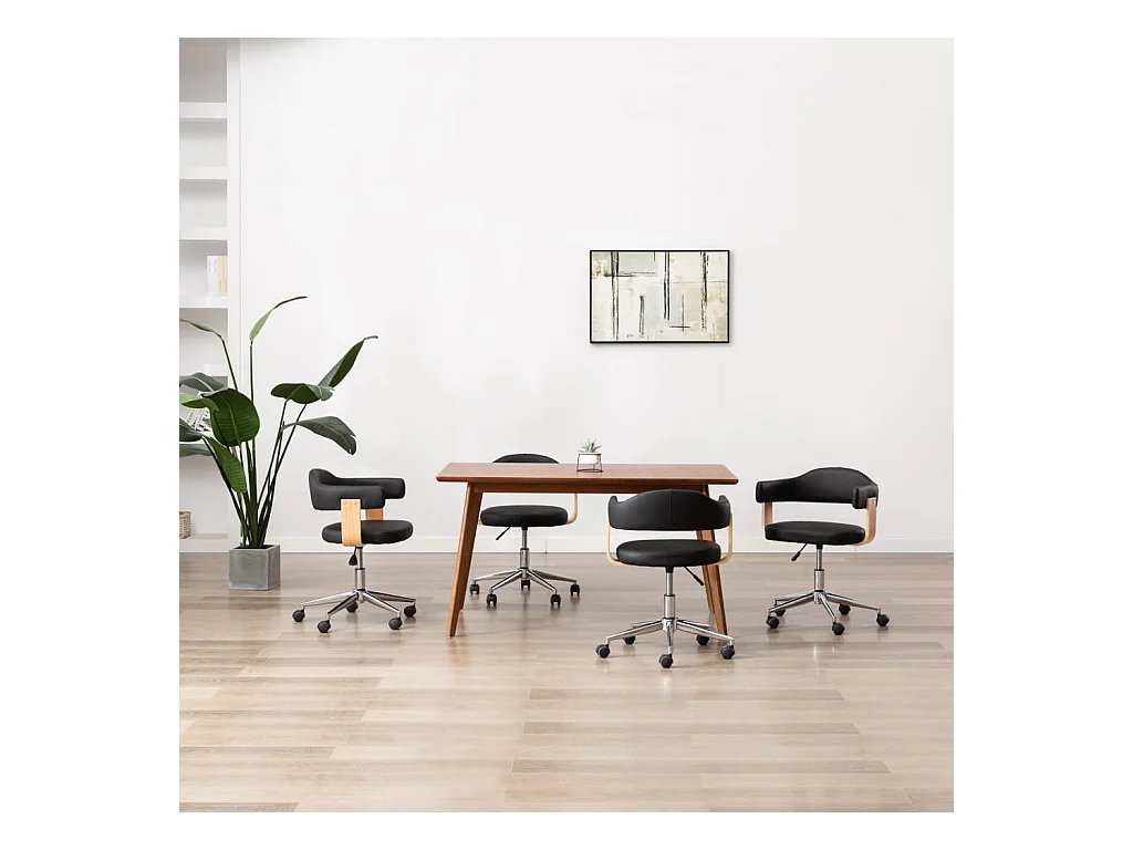Eetkamerstoelen 4 st draaibaar gebogen hout en kunstleer zwart
