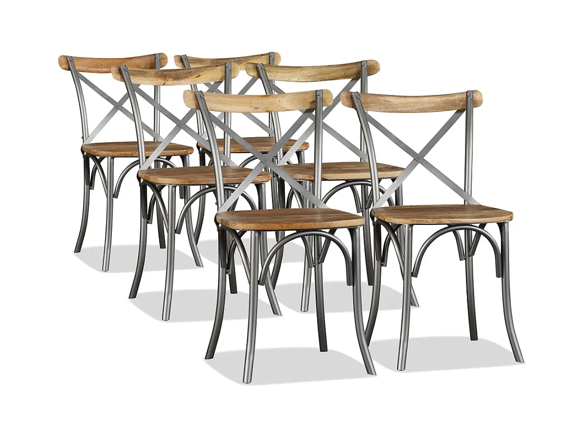 Eetkamerstoelen massief mangohout en stalen rugleuning 6 st