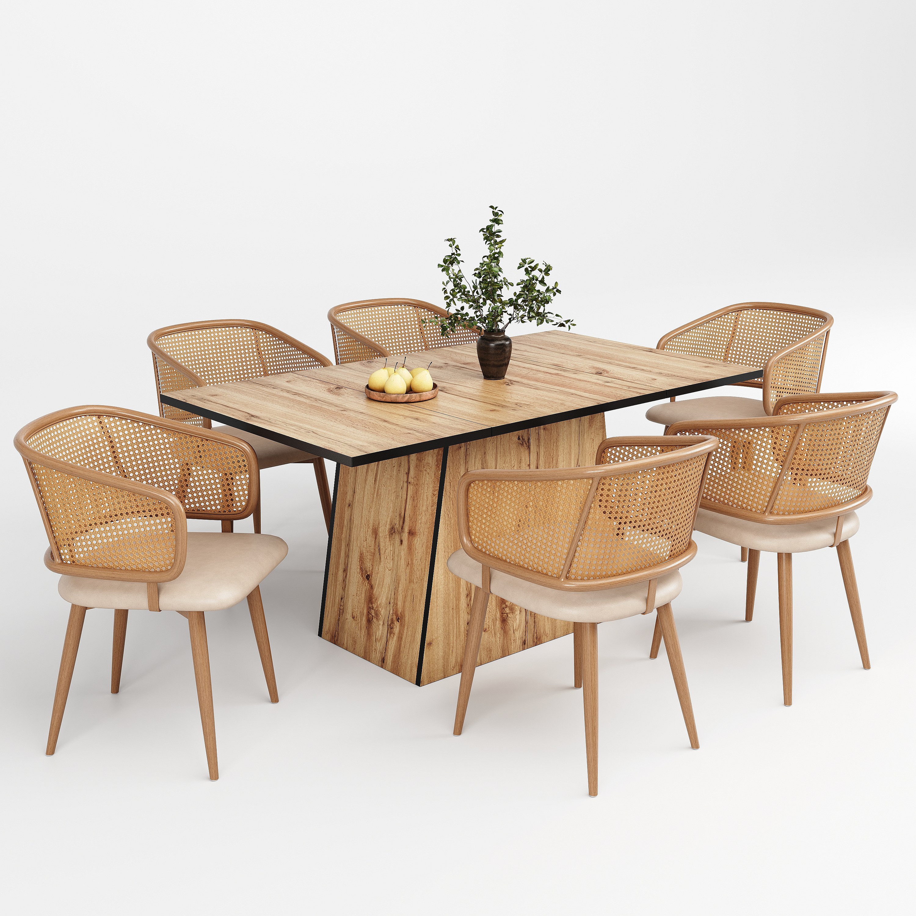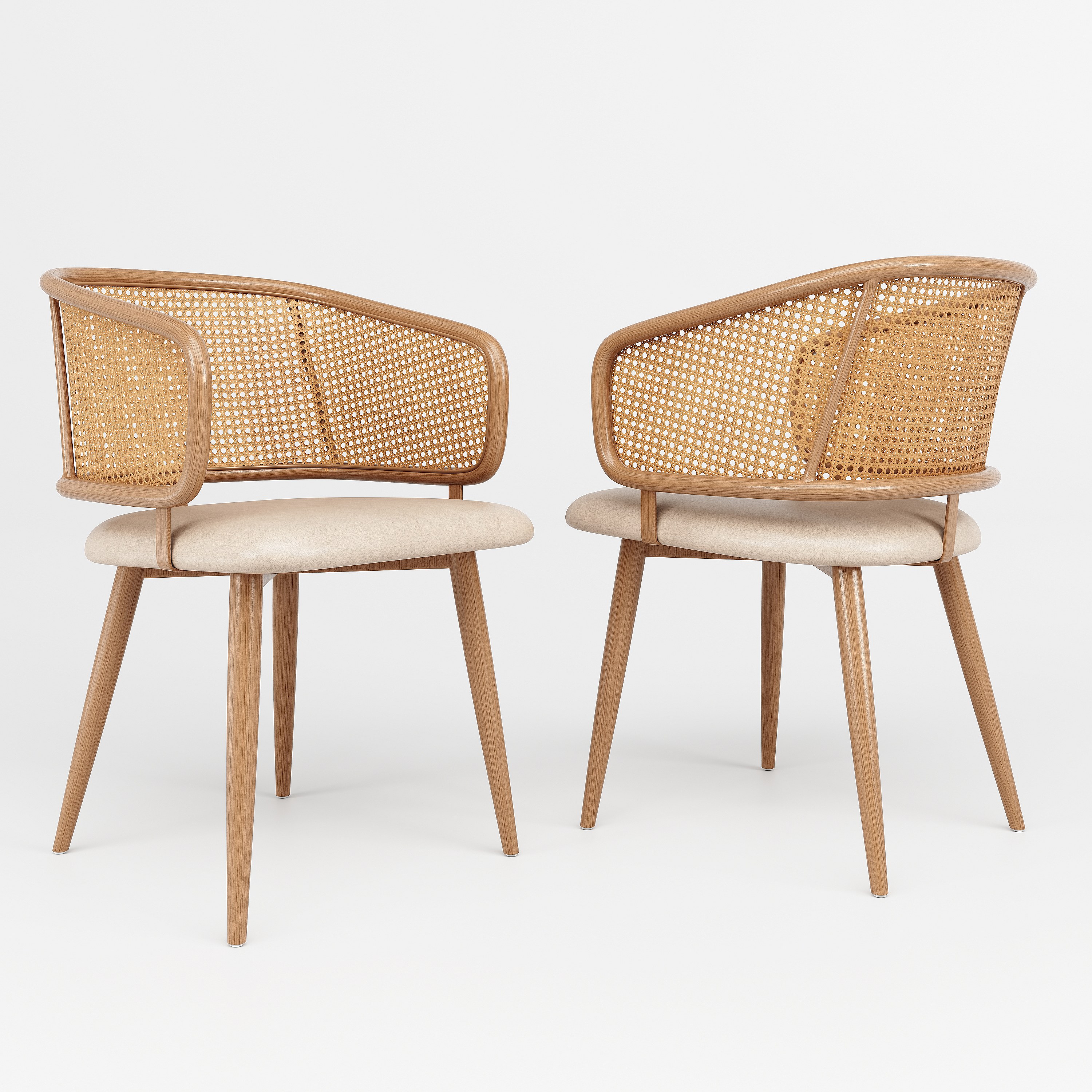 Eetkamerstoelen set van 2, met rotan rugleuning, PU leren zitkussen, comfortabel, ademend