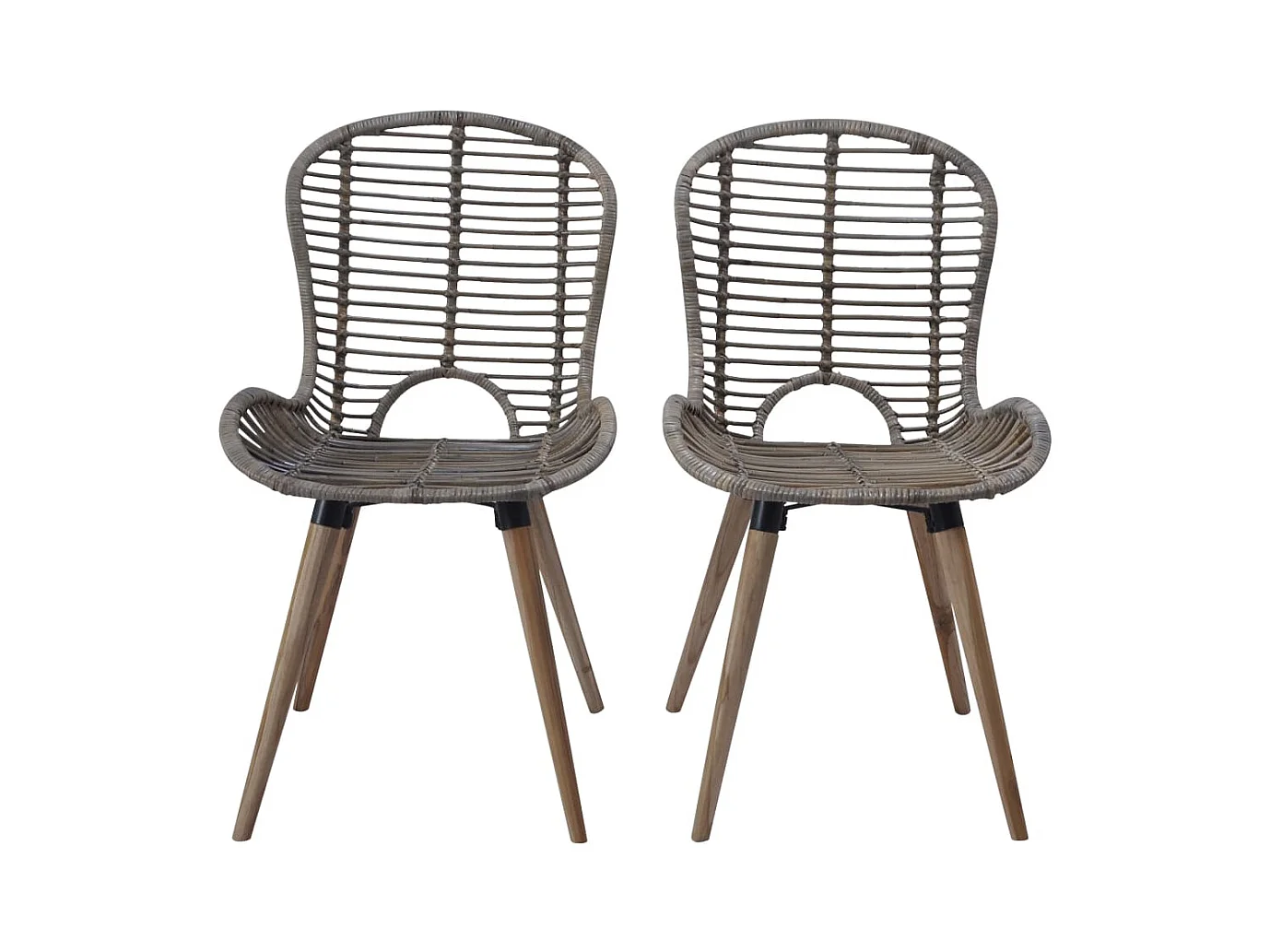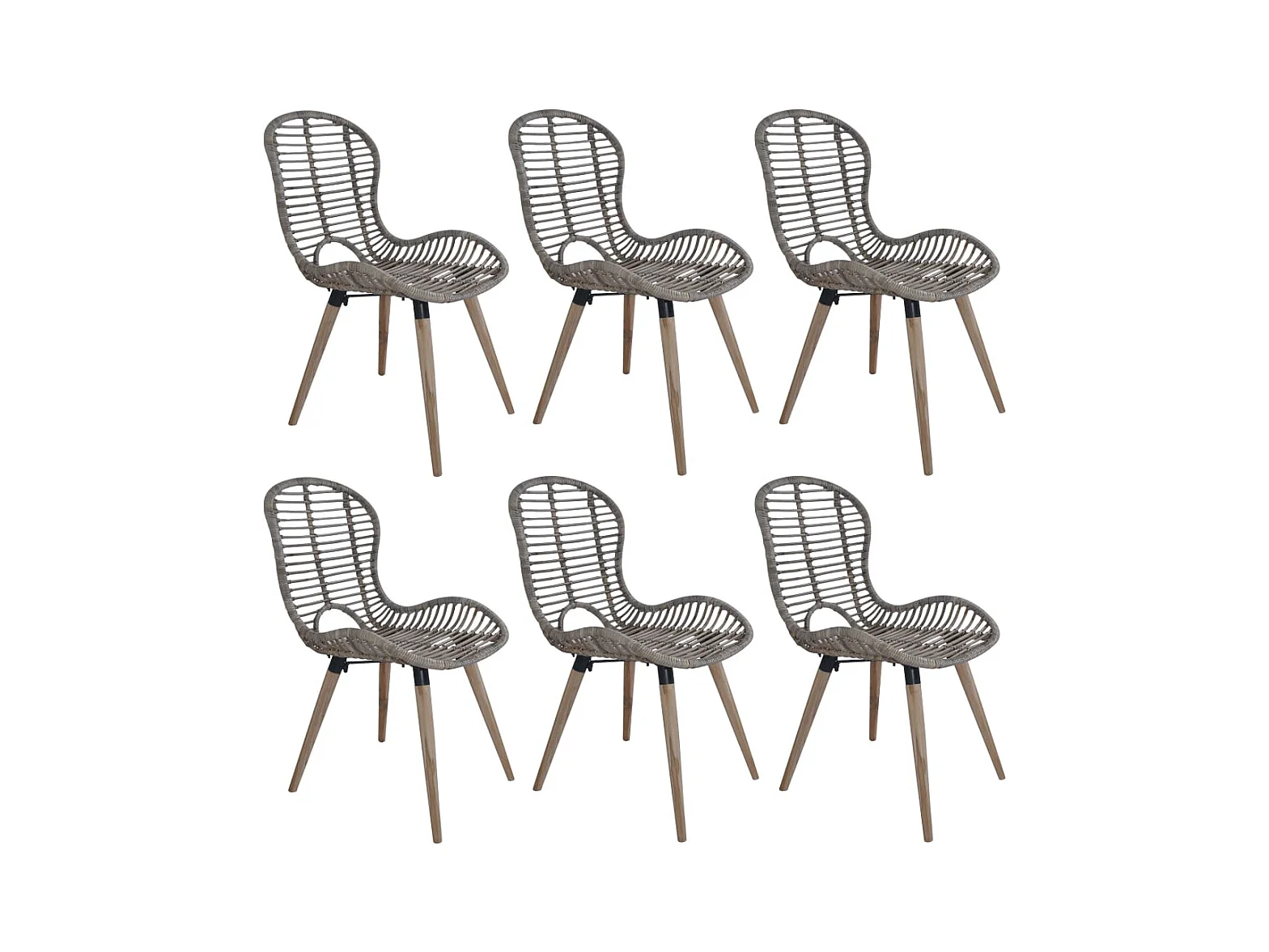 Kubu rotan en mangohouten eetkamerstoelenset van 6