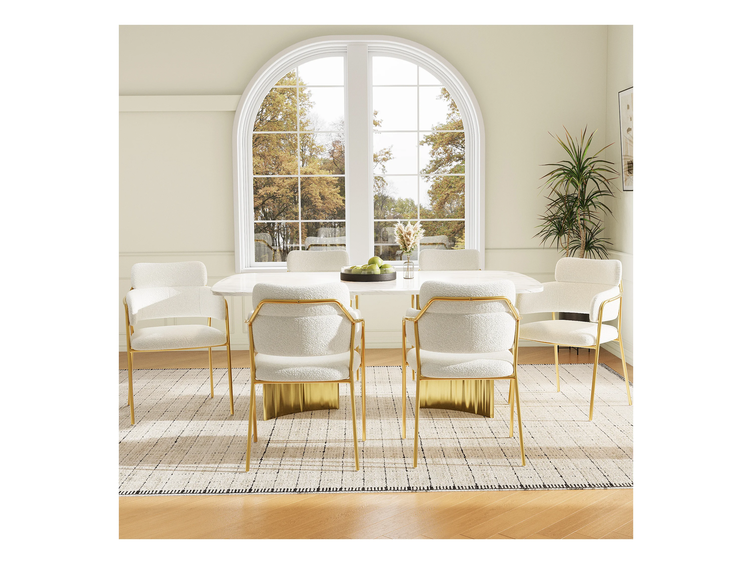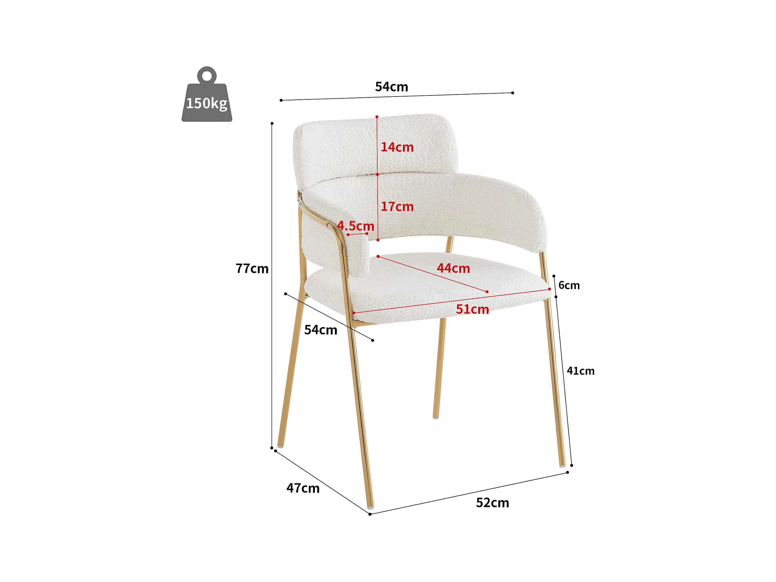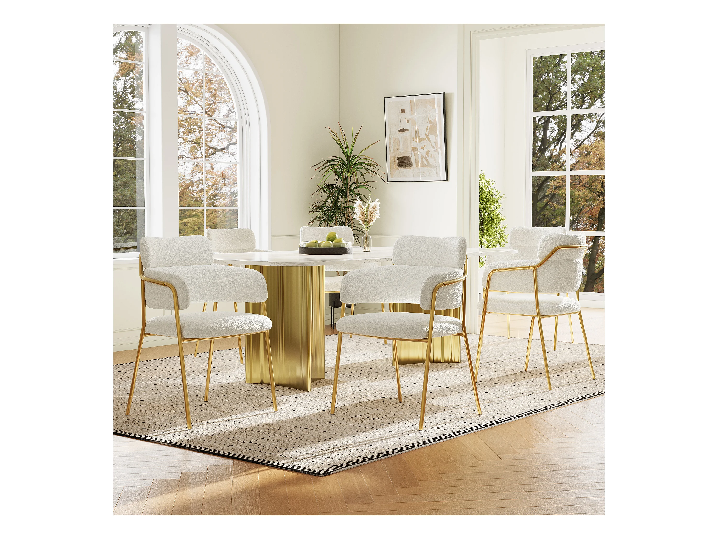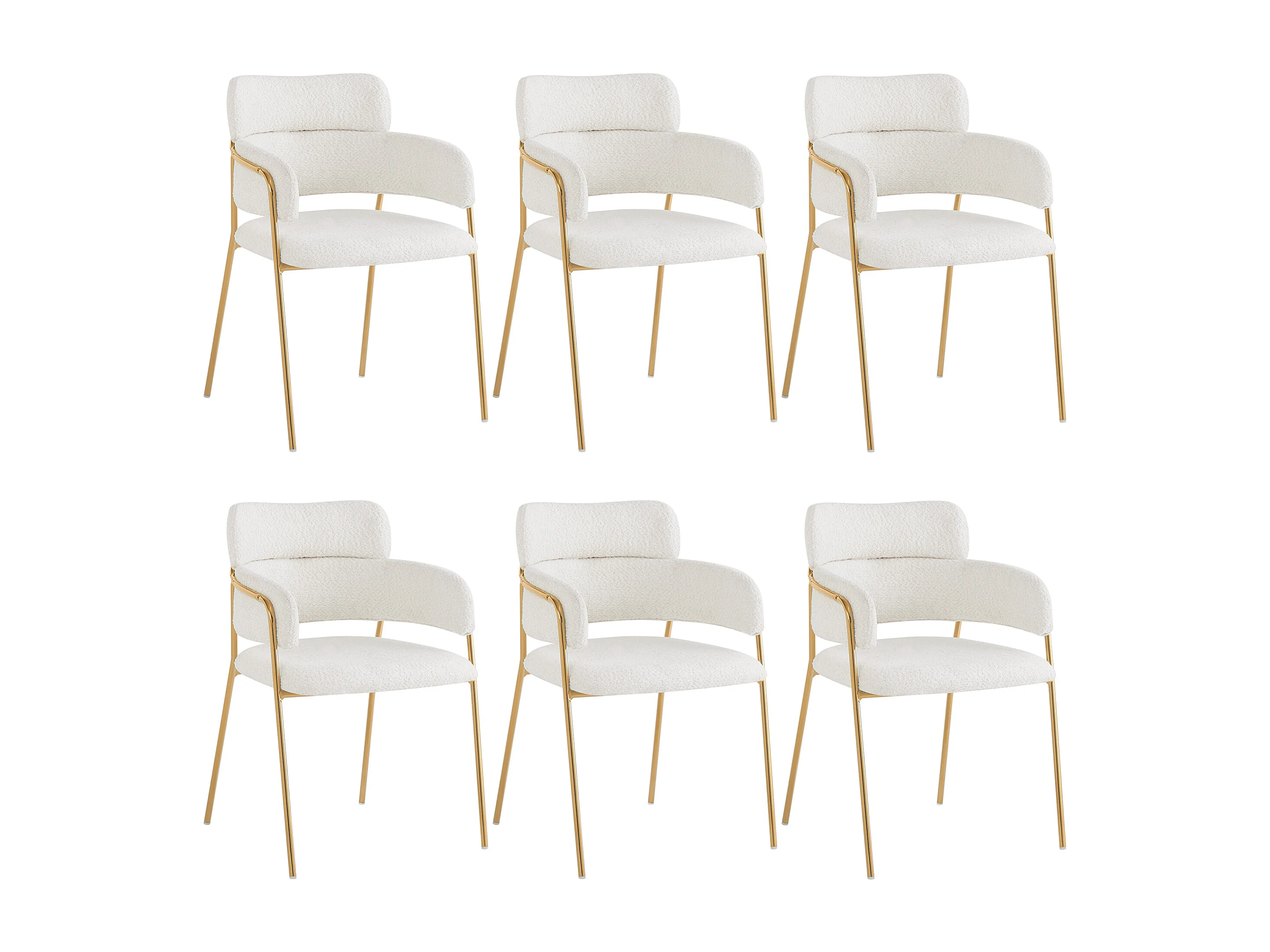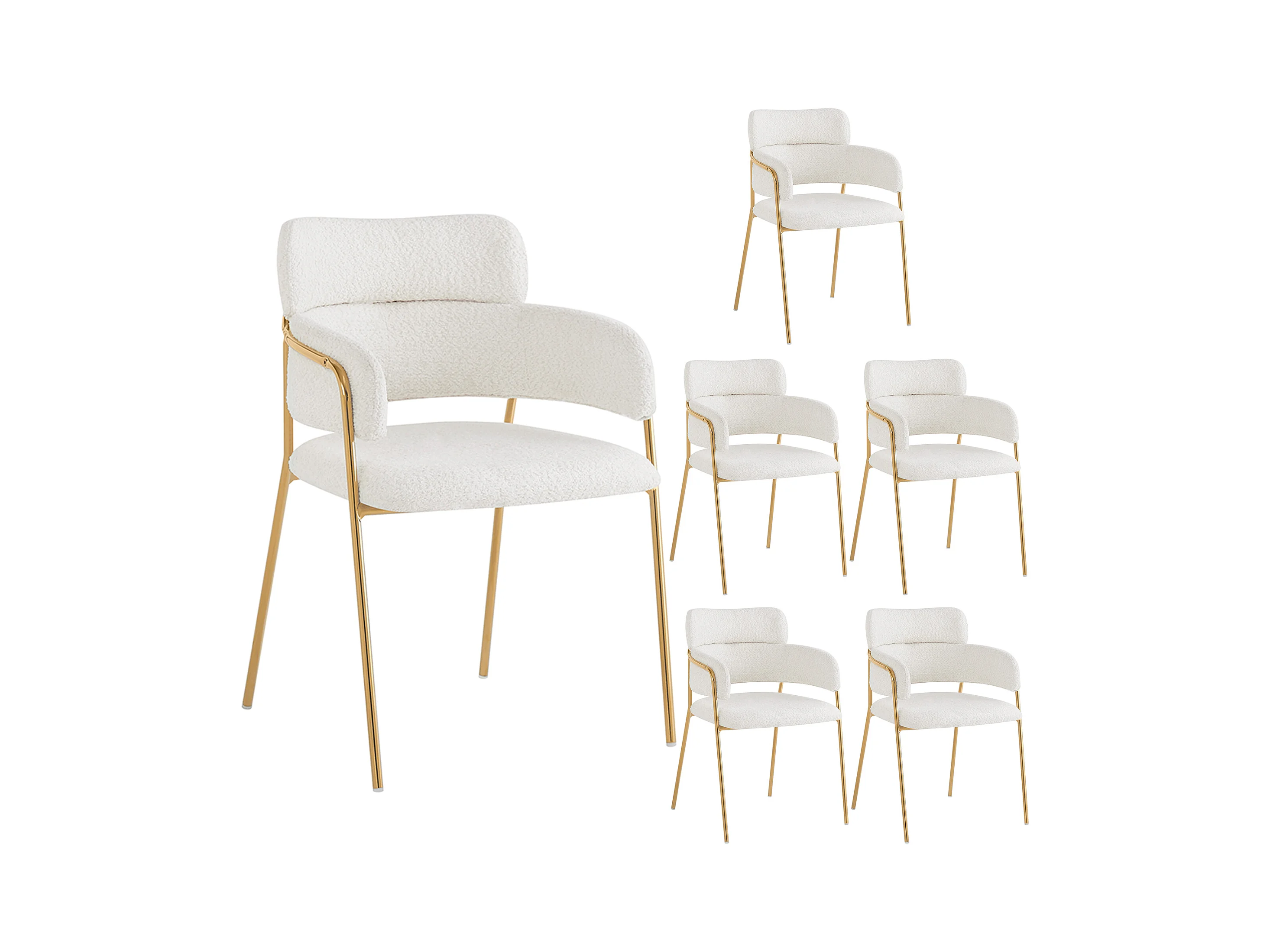 Eetkamerstoelenset (6 stuks), moderne stoel met gouden poten, ergonomische stof, luxe, beige (51 x 44 x 77 cm)