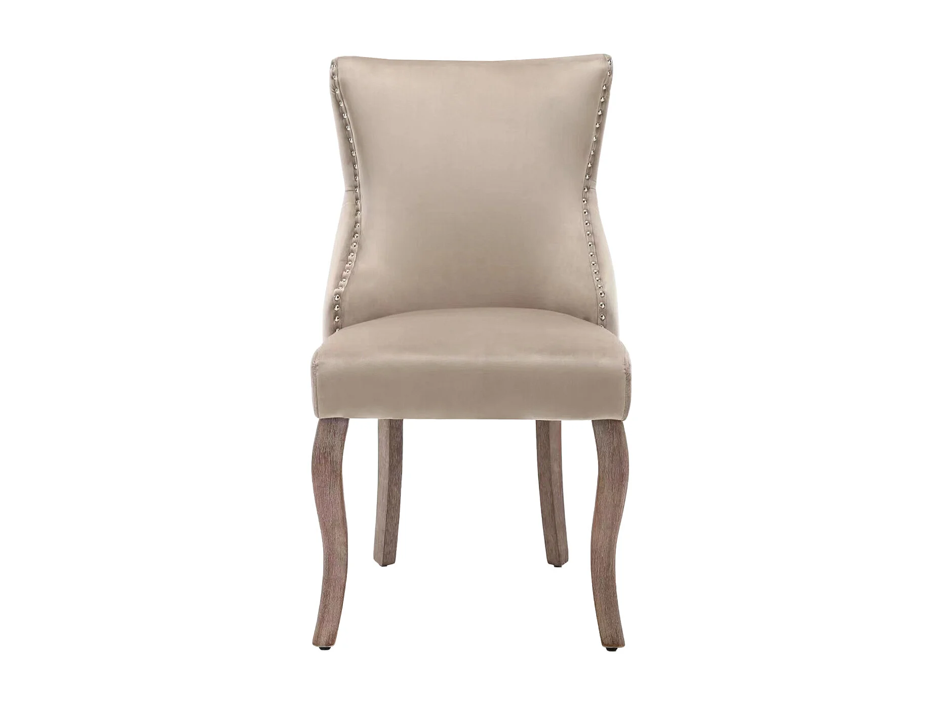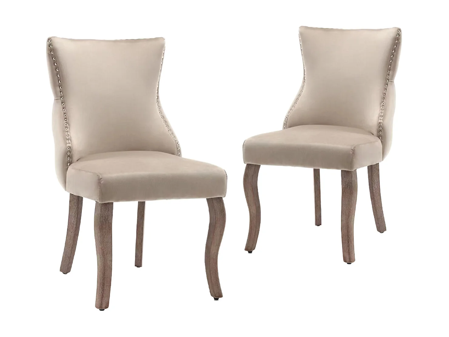 Eetkamerstoelenset van 6, gestoffeerde fluwelen accentstoel met spijkerkopafwerking en massief houten poten, beige.