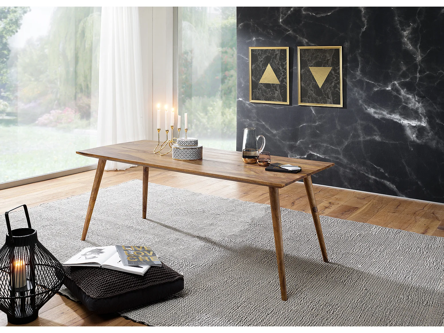 Eetkamertafel MUMBAI 180x90x76 cm Sheesham massief houten eettafel tijdloos, keukentafel rechthoekig, houten tafel eetkamer eenvoudig, grote eettafel hout