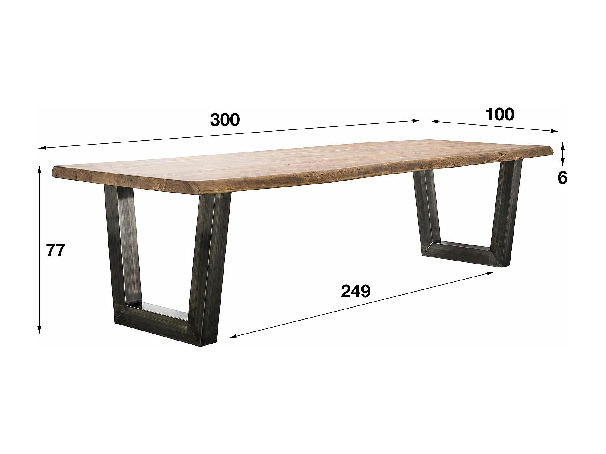 Eetkamertafel - Stam - Zwart RVS Onderstel - 300x100x77