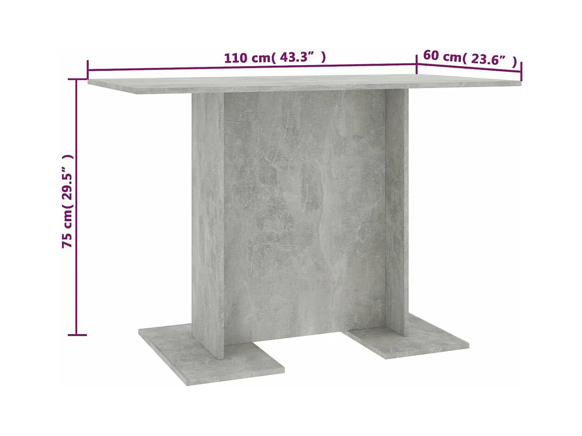 Eettafel 110x60x75 cm bewerkt hout betongrijs