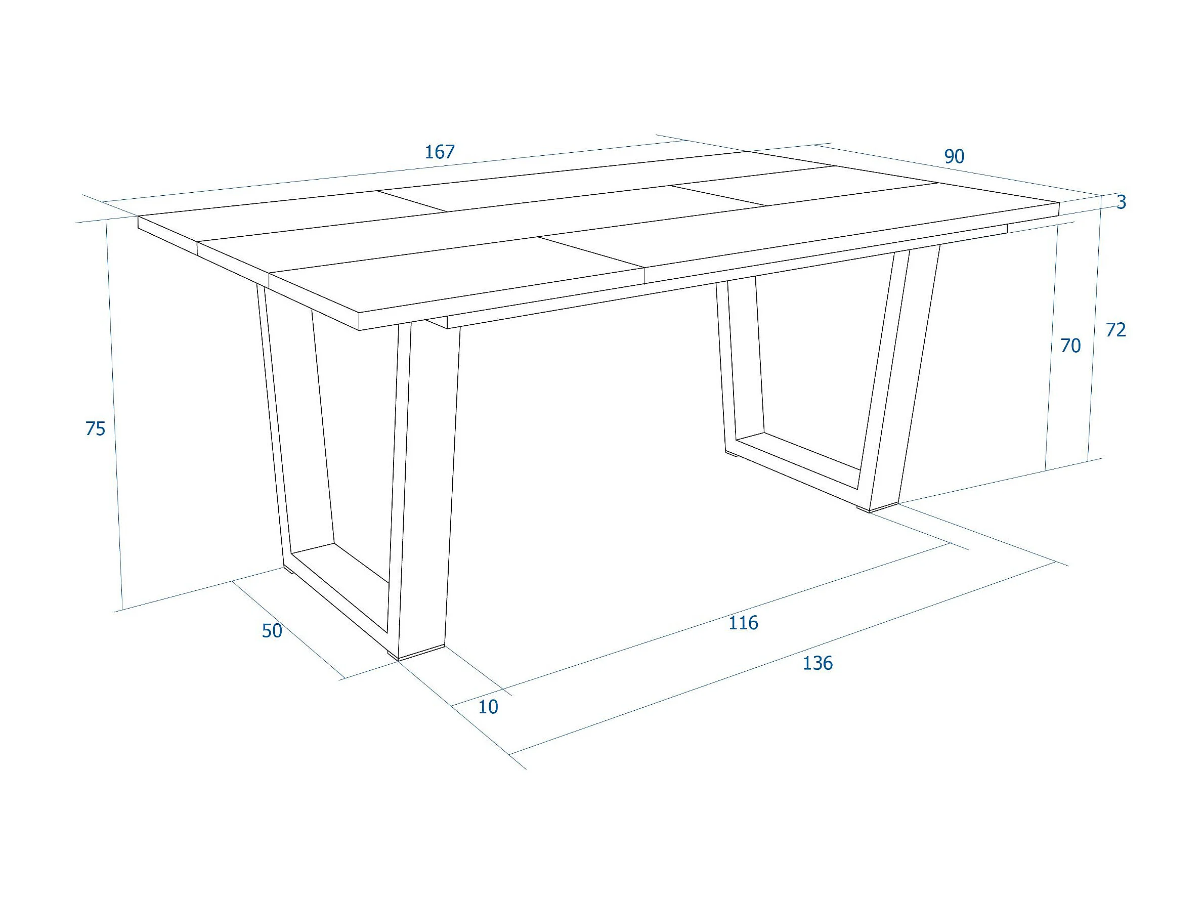 Eettafel, 167x90x75cm, Voor 8 personen, Houten poten, Eiken/Zwart