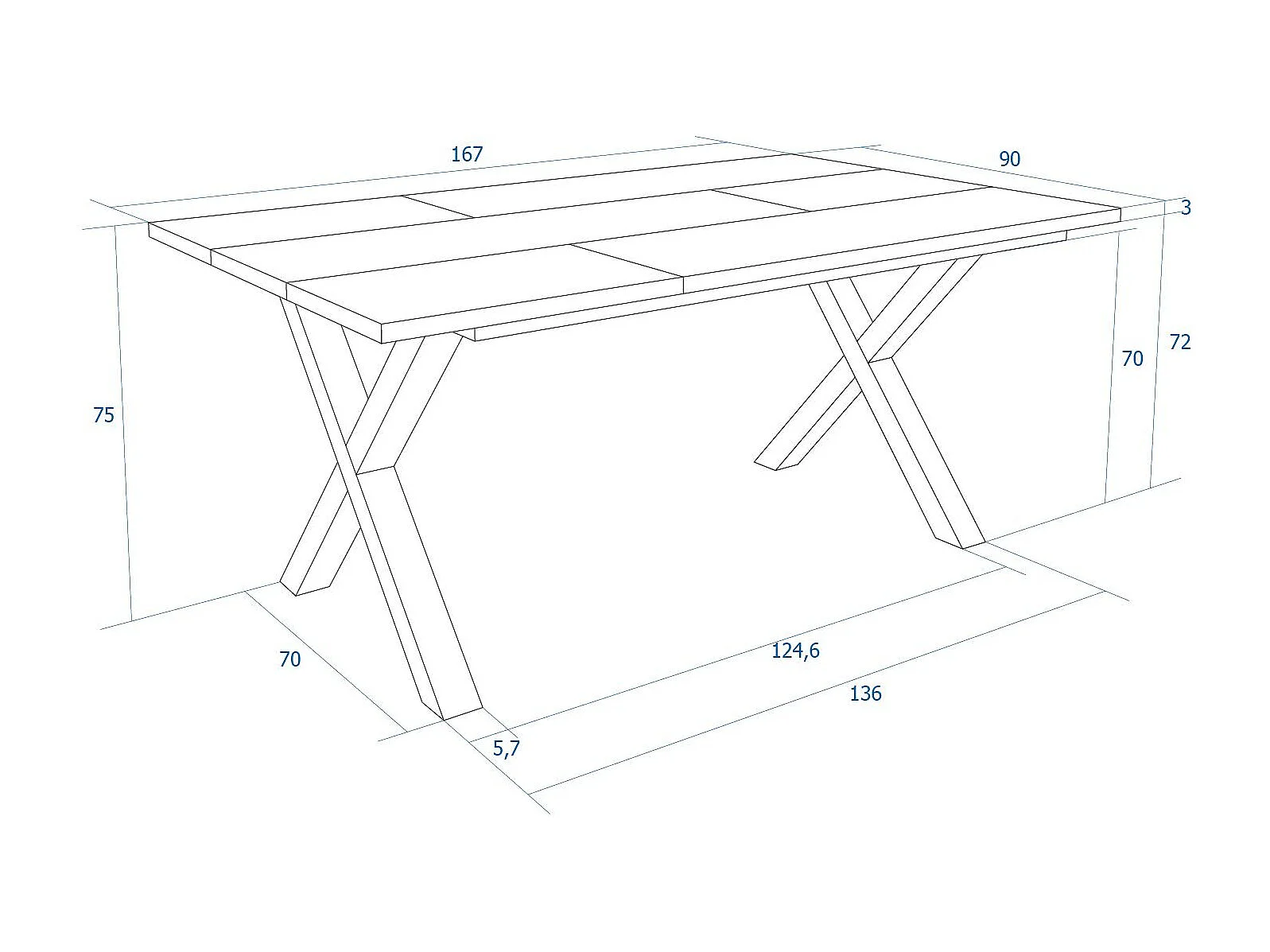 Houten rechthoekige tafel voor 6/8 personen 160x90 cm
