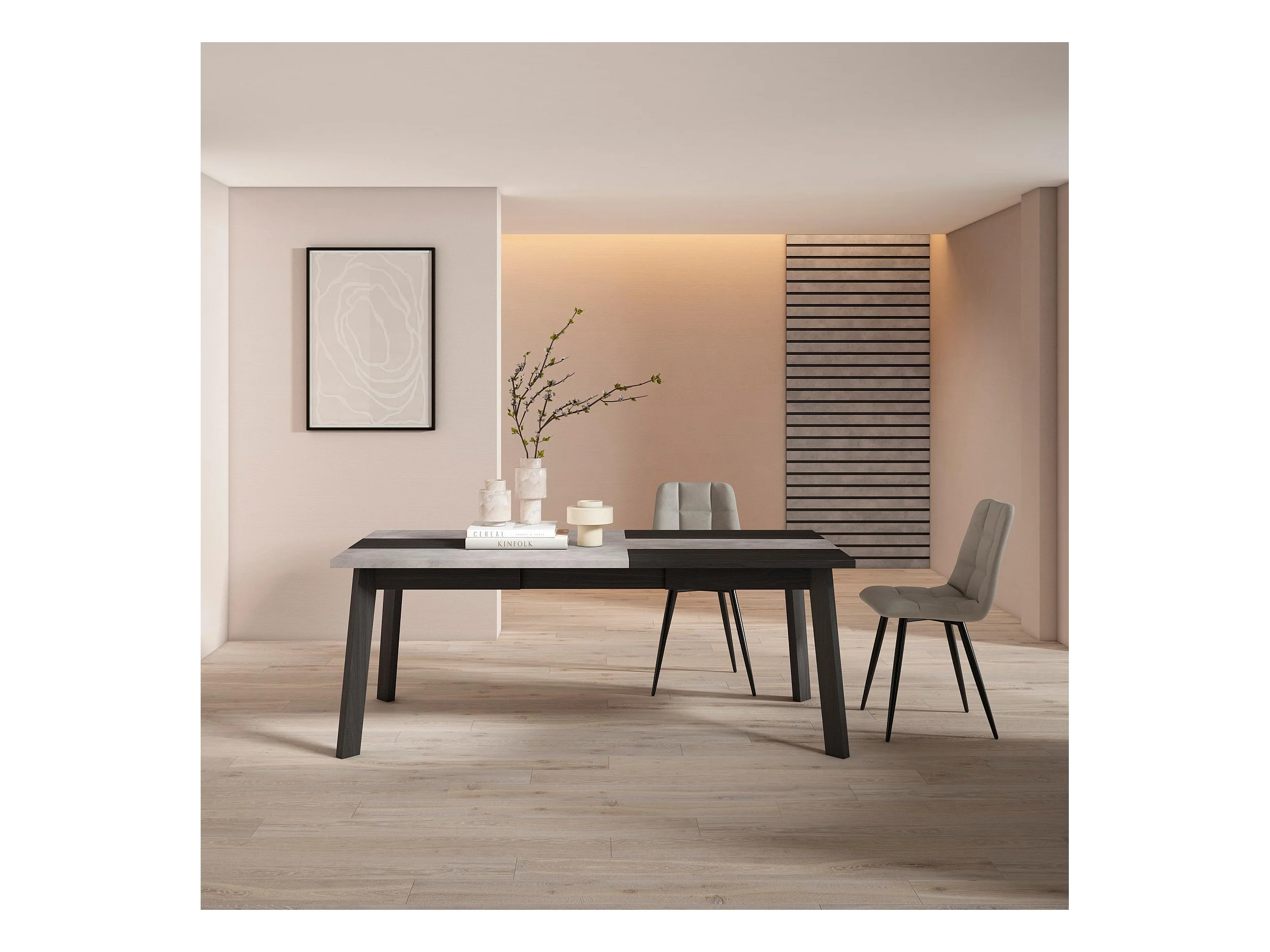 Eettafel, 200, Voor 10 personen, Houten poten, Cement