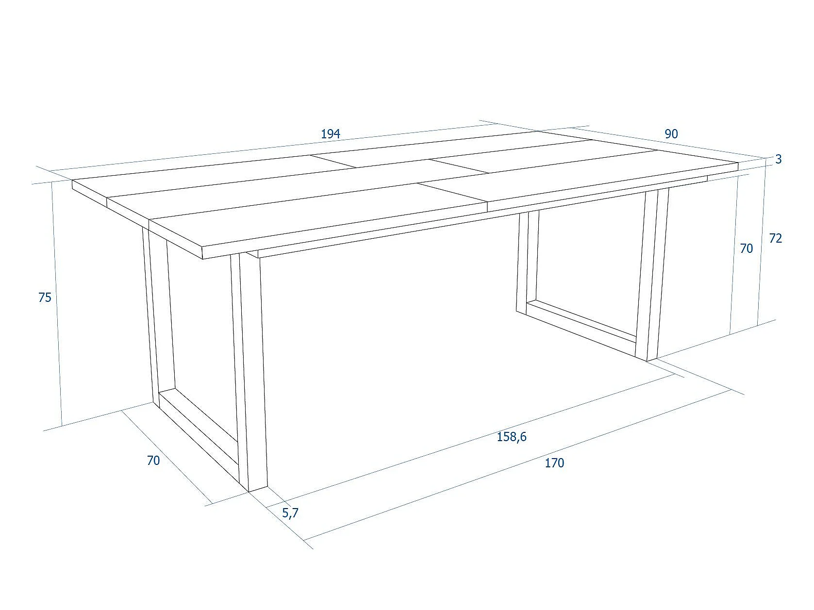Eettafel, 200, Voor 10 personen, Massief houten poten, Cement