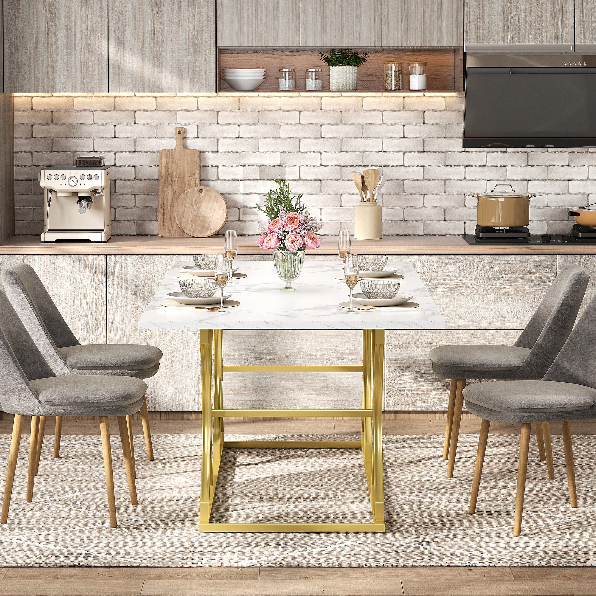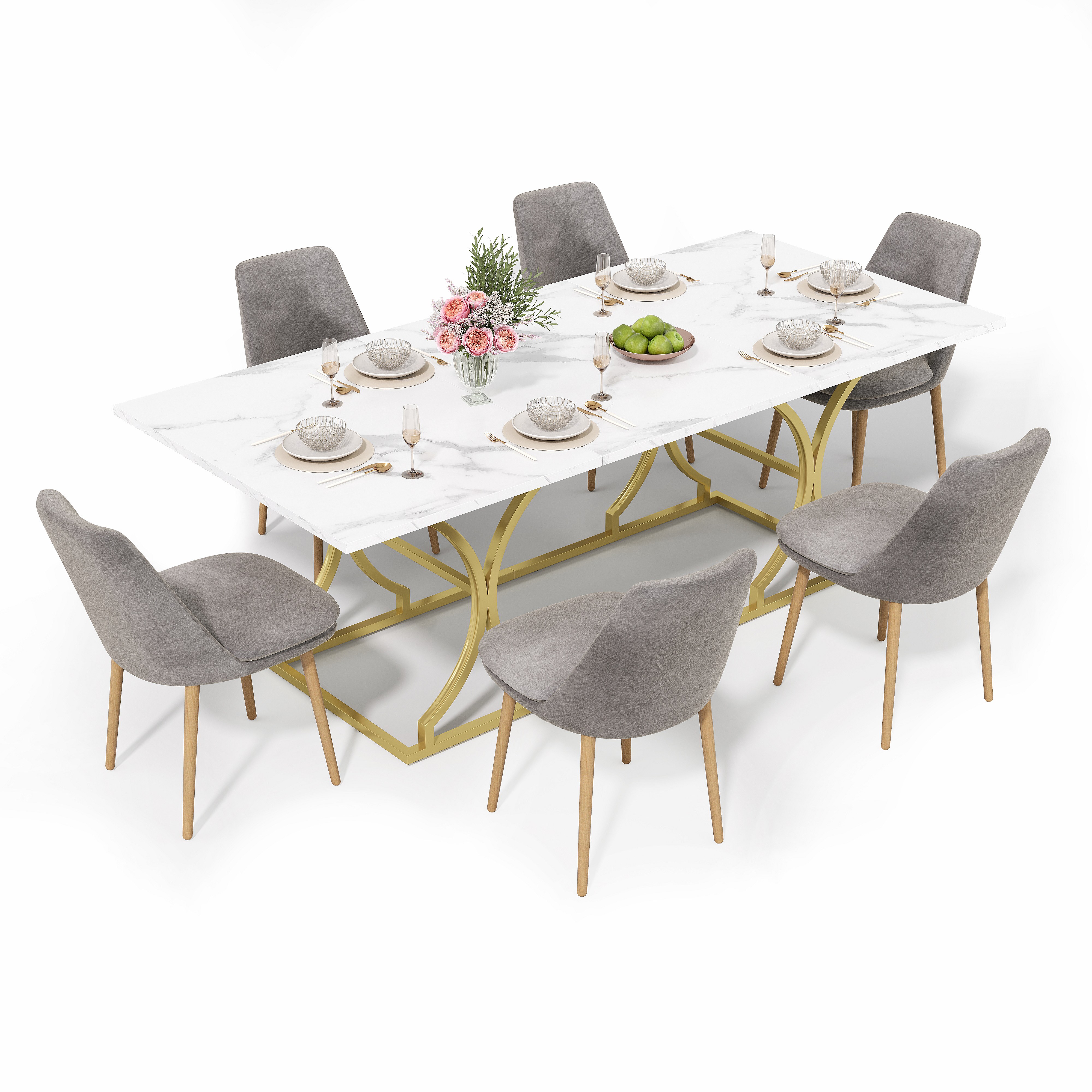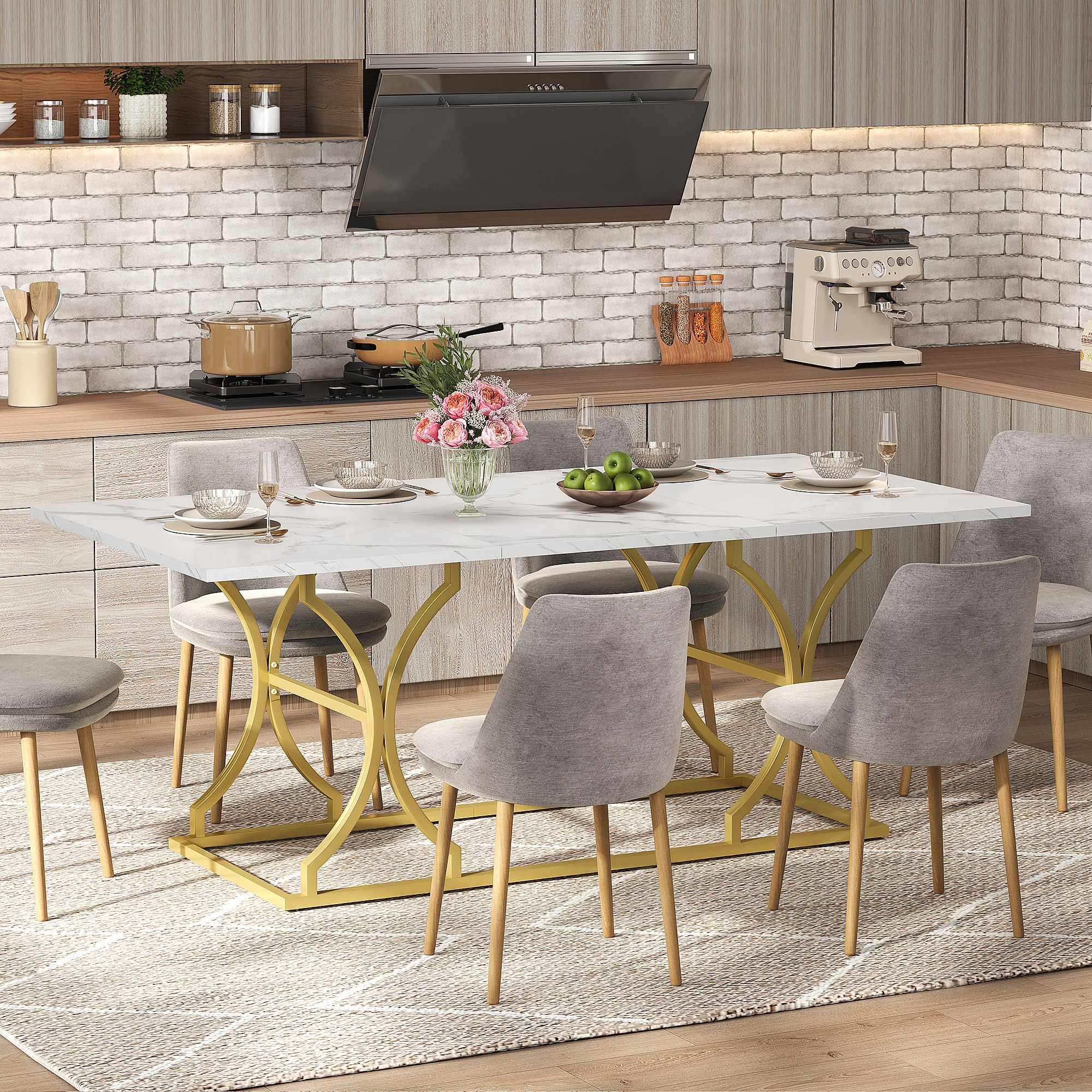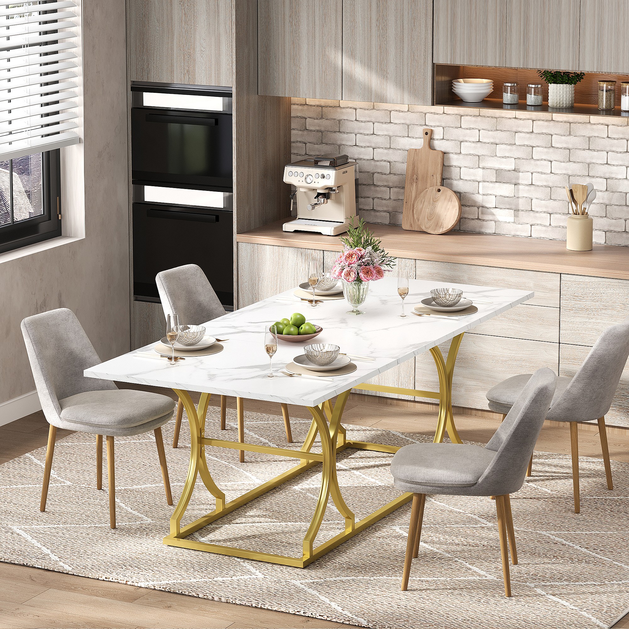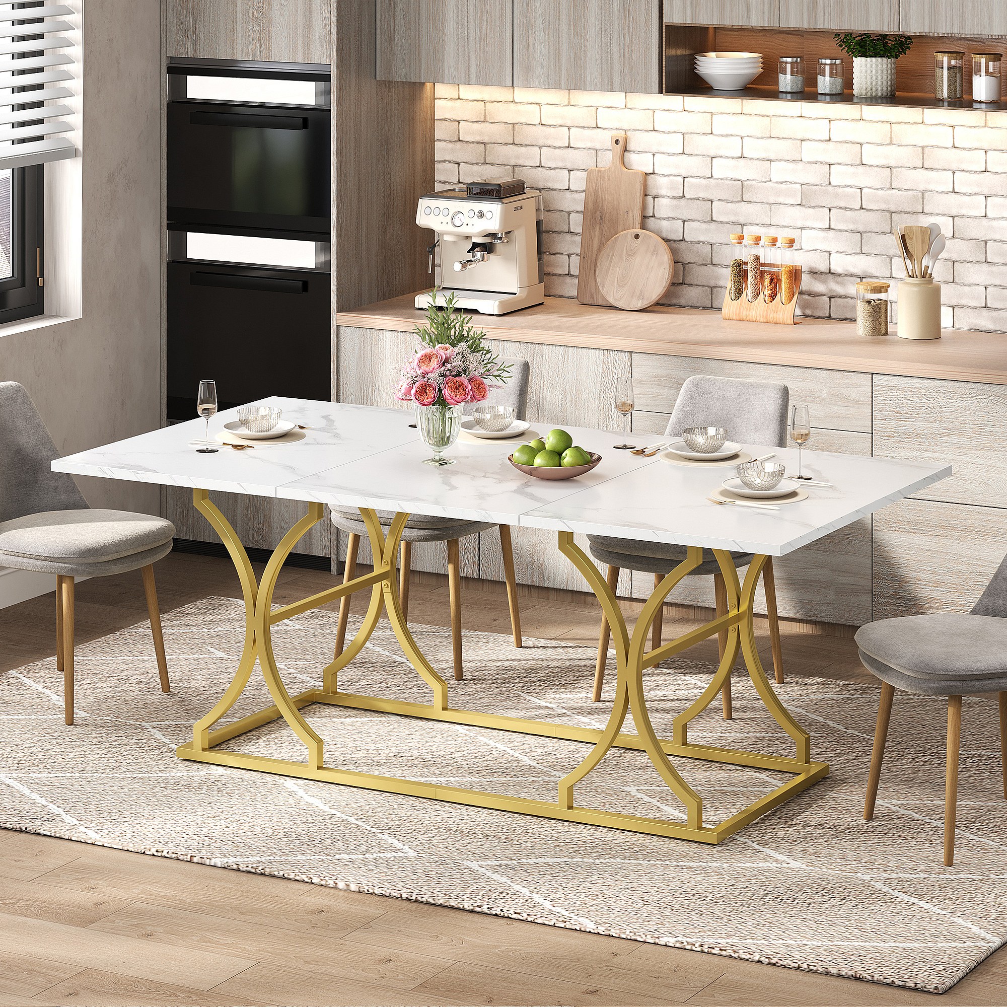 Eettafel 200x80x76 cm - modern design marmerlook - geschikt voor 8-10 personen - metalen poten - MDF - Natuur