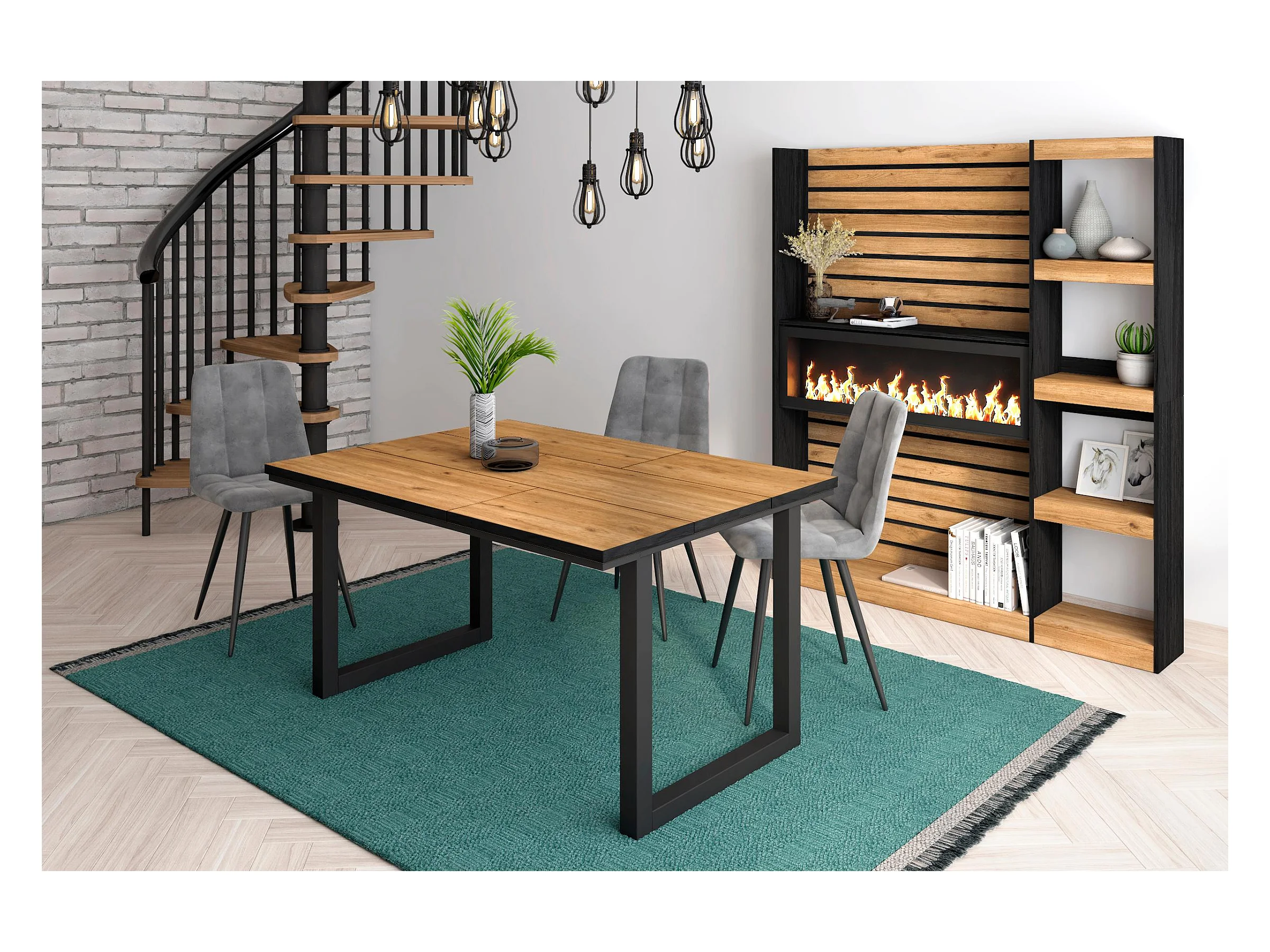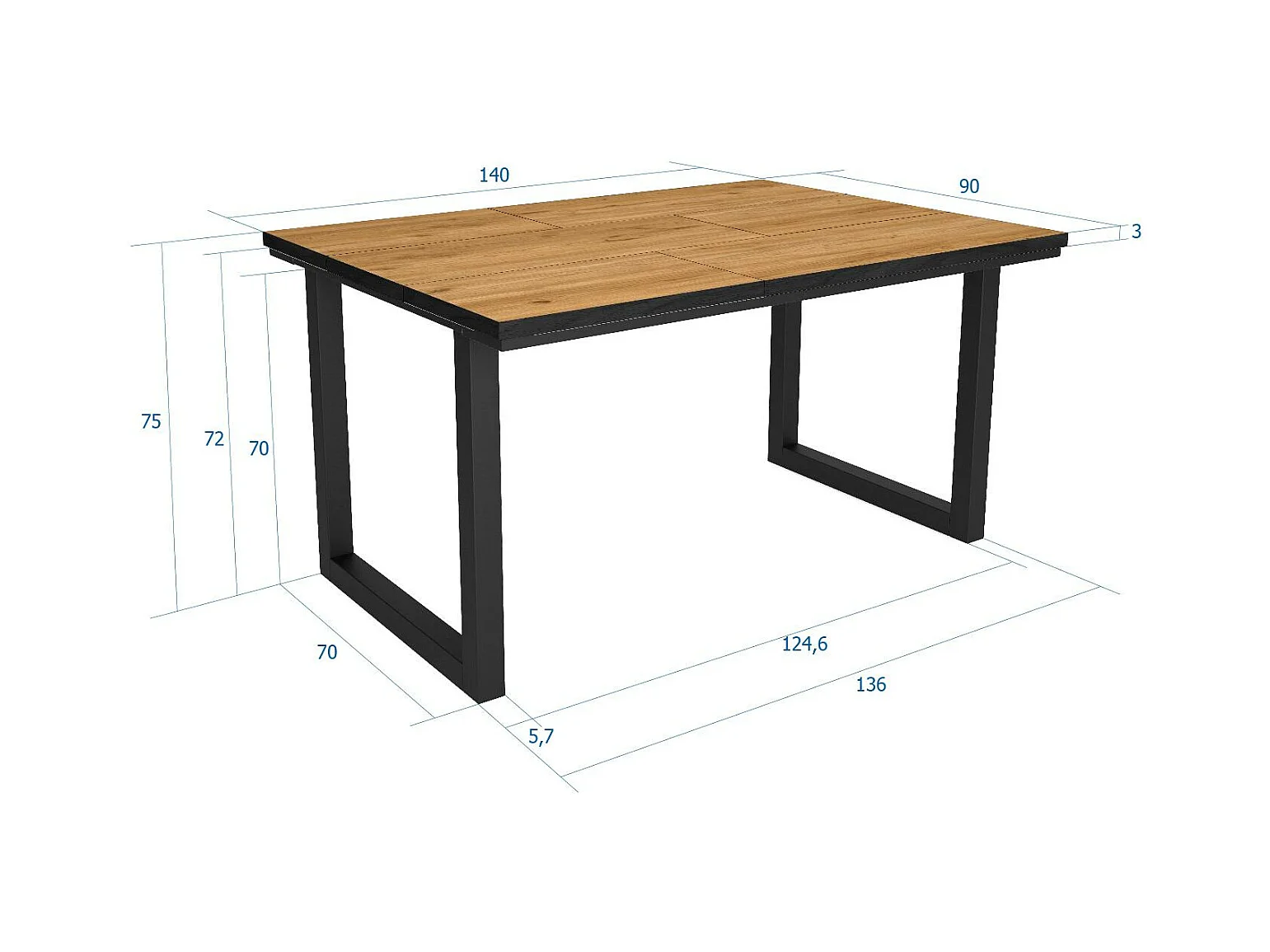 Eettafel, 6 personen, 140x90x75cm, Robuust en stabiel dankzij zijn structuur en solide poten, Eiken en zwarte , Industriële stijl