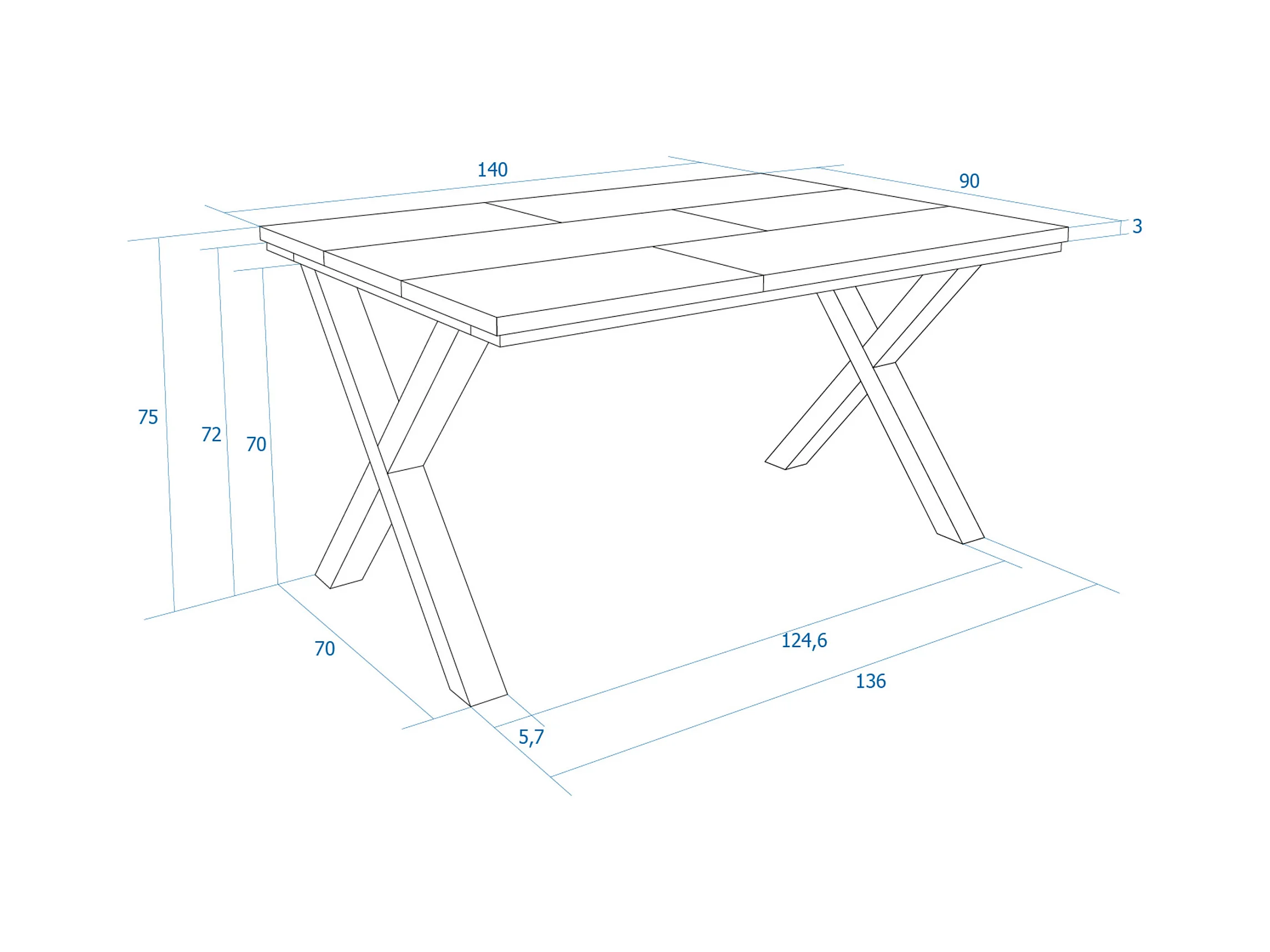 Eettafel, 6 personen, 140x90x75cm, Robuust en stabiel dankzij zijn structuur en solide poten, Zwart, Industriële stijl