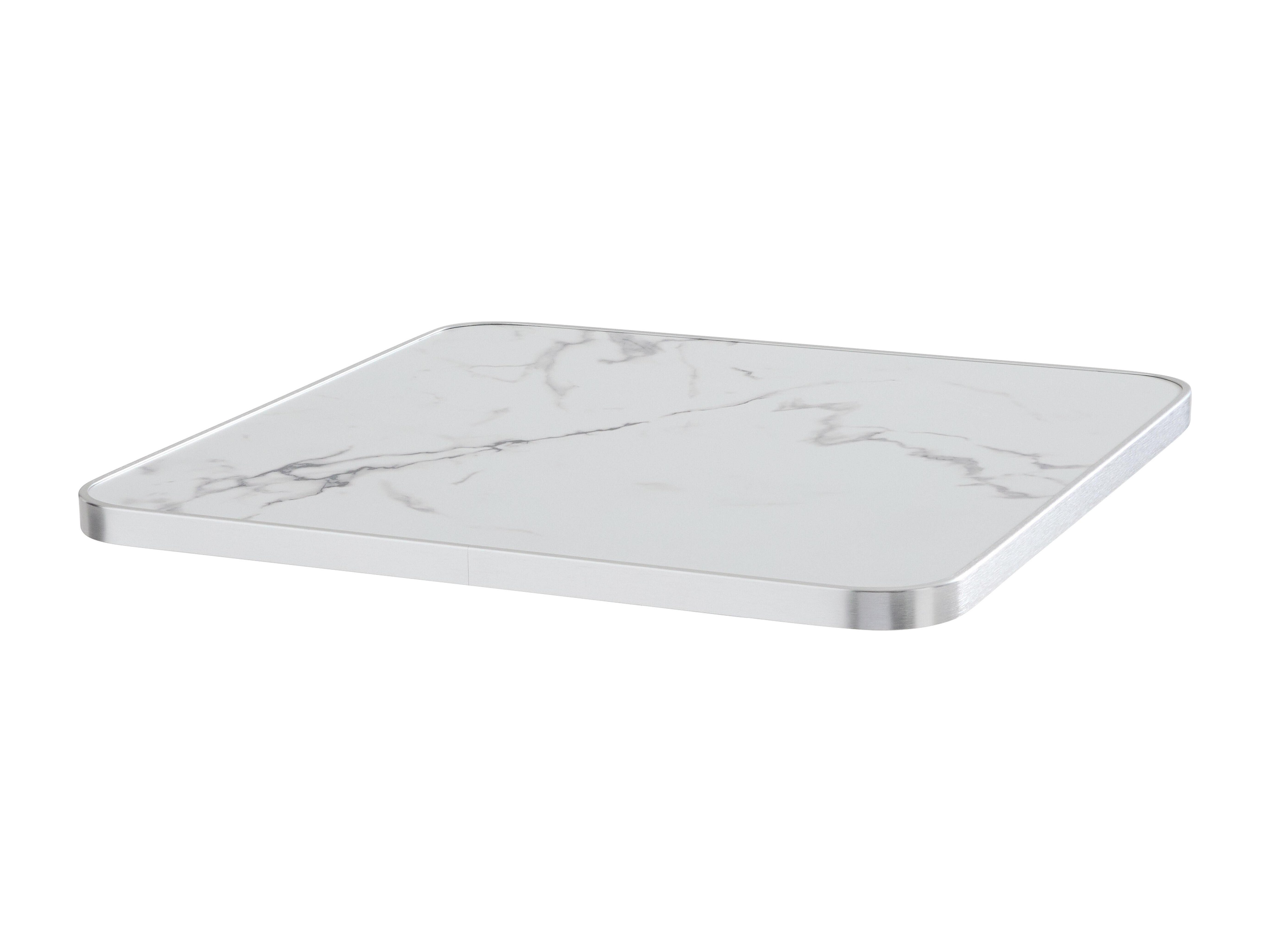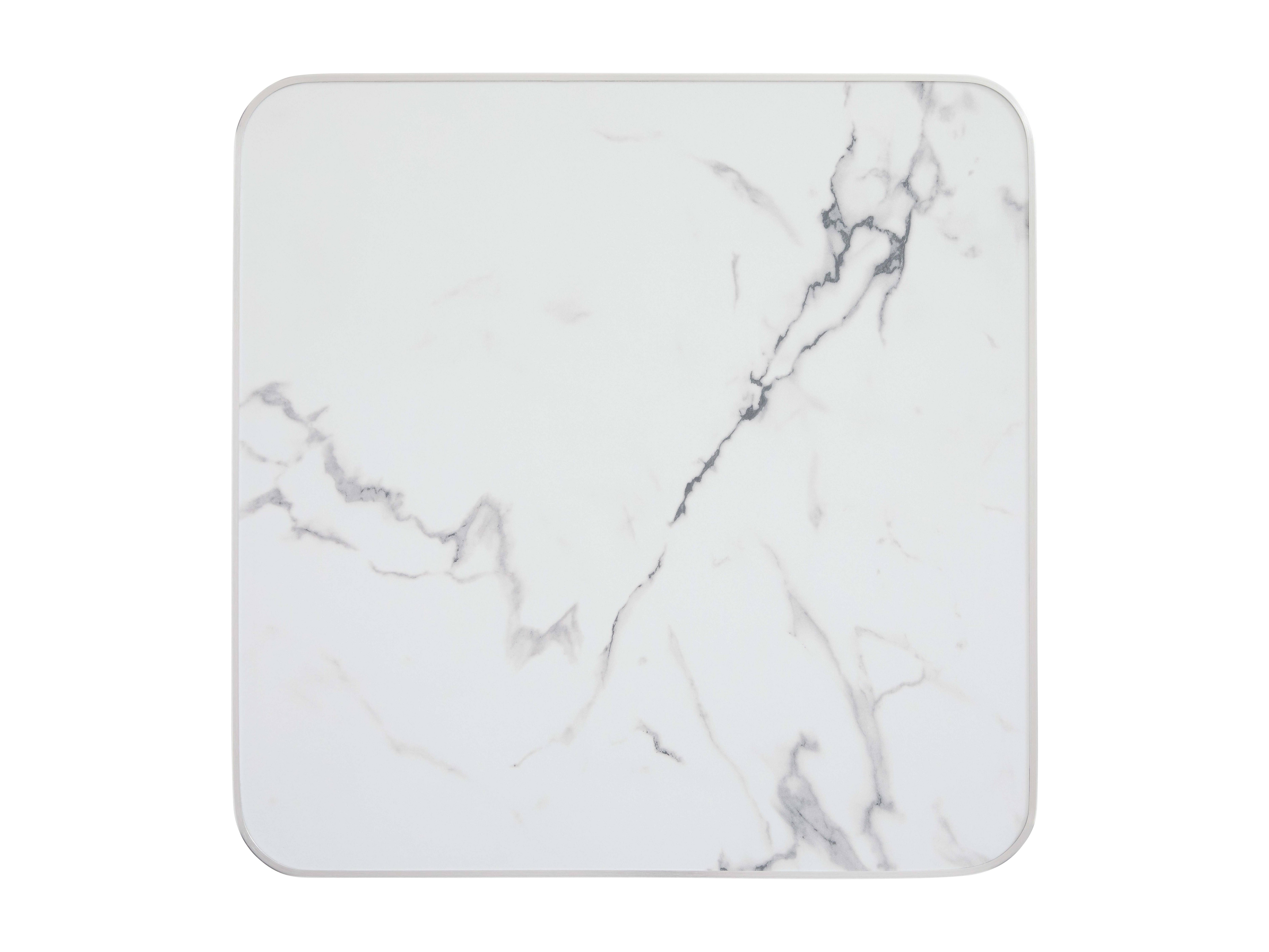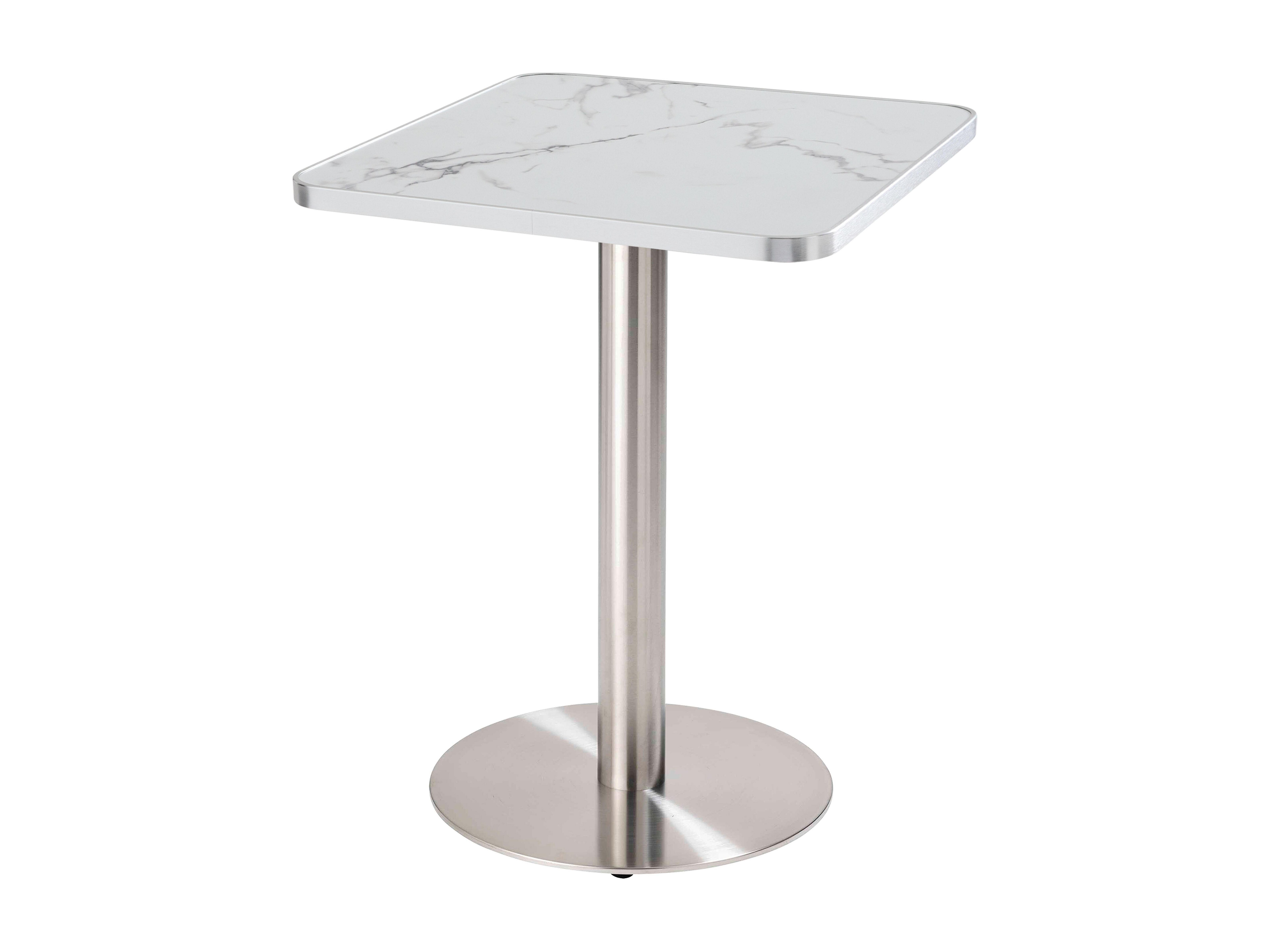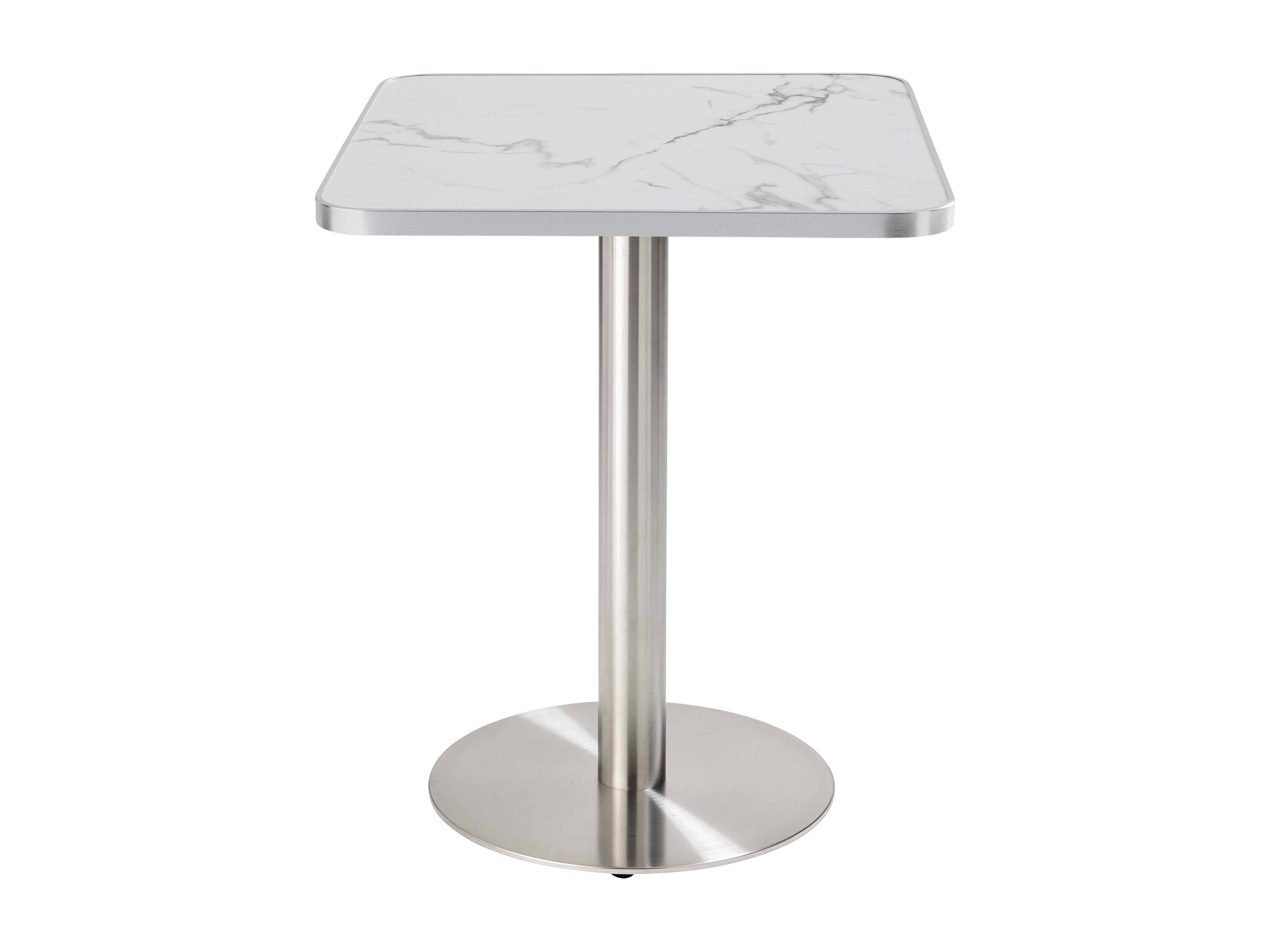 Eettafel 60 x 60 cm zilveren poot en wit/zilver marmeren bekleding