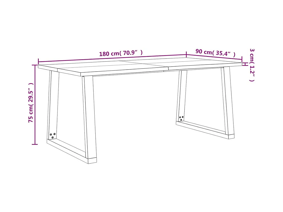 Eettafel NOAIN A-vormige poten 180x90x75 cm massief hout