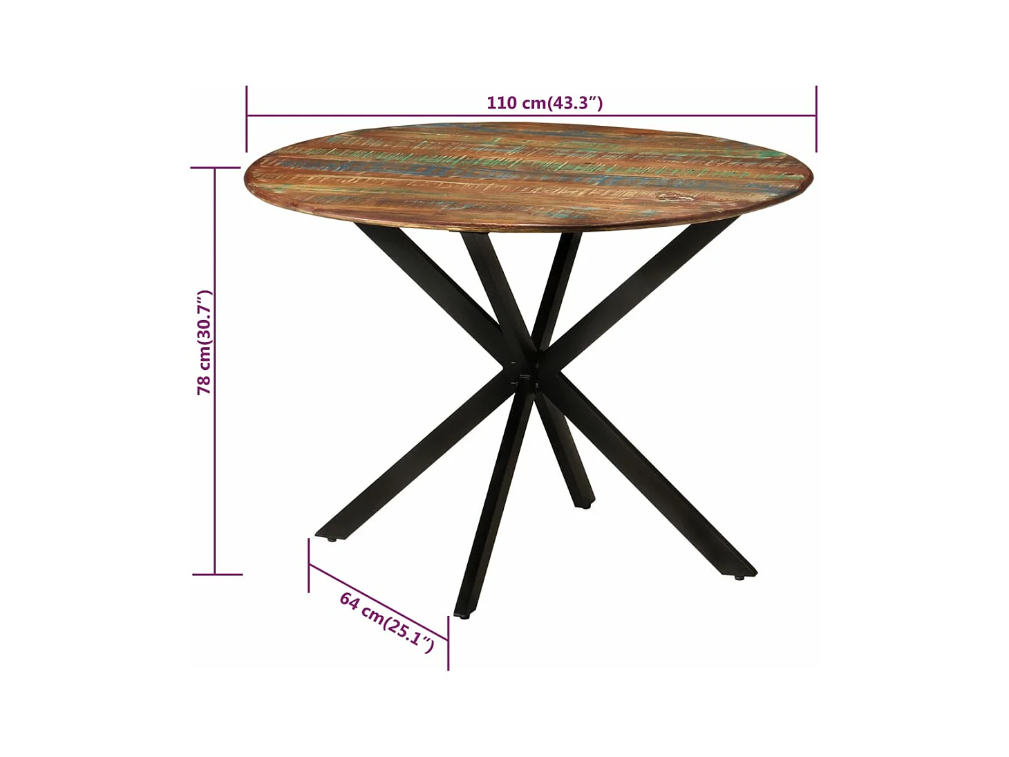 Eettafel Ø110x78 cm massief gerecycled hout en staal