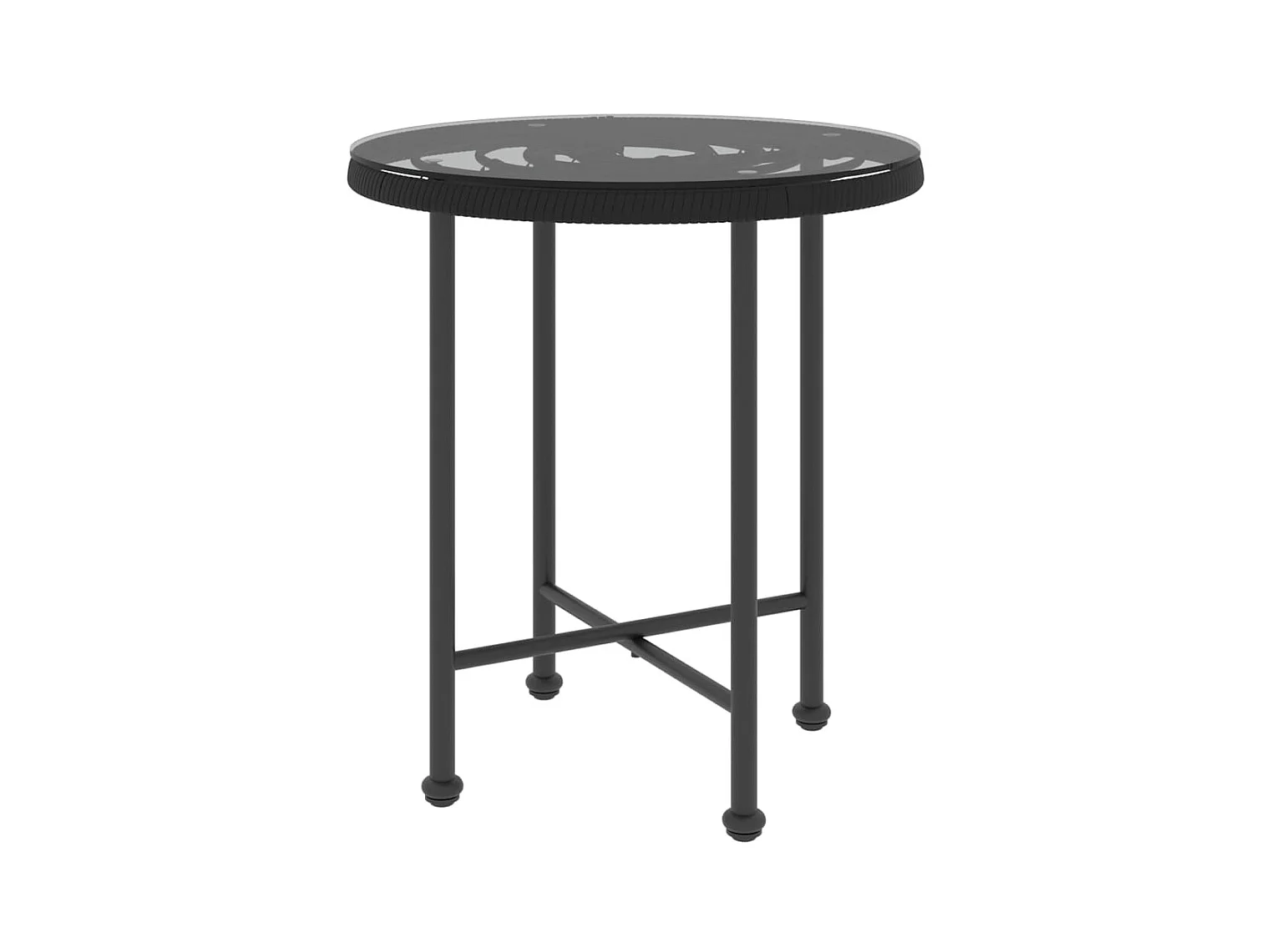 Tuintafel Ø70x74 cm rattan en glas zwart NL840291