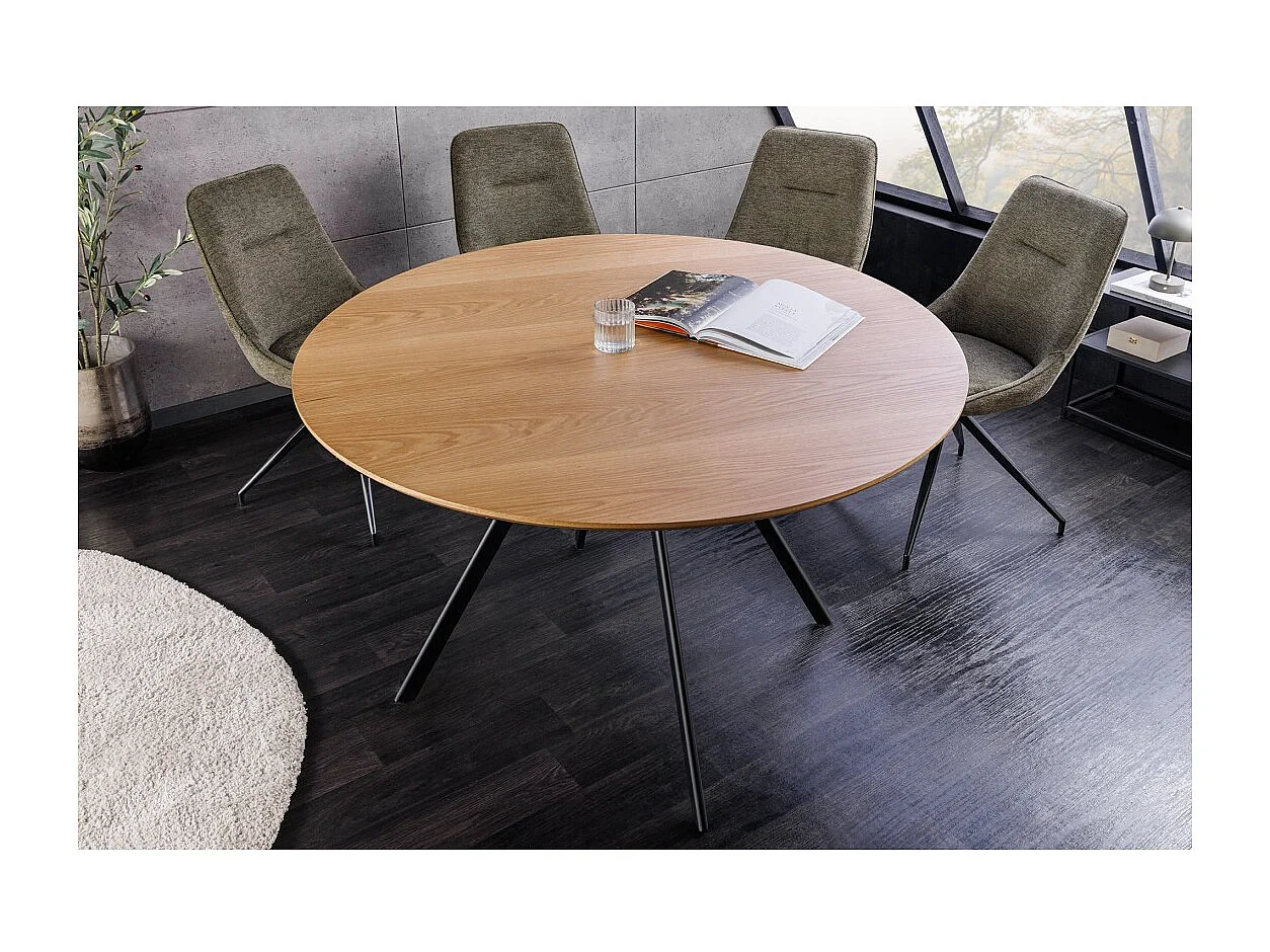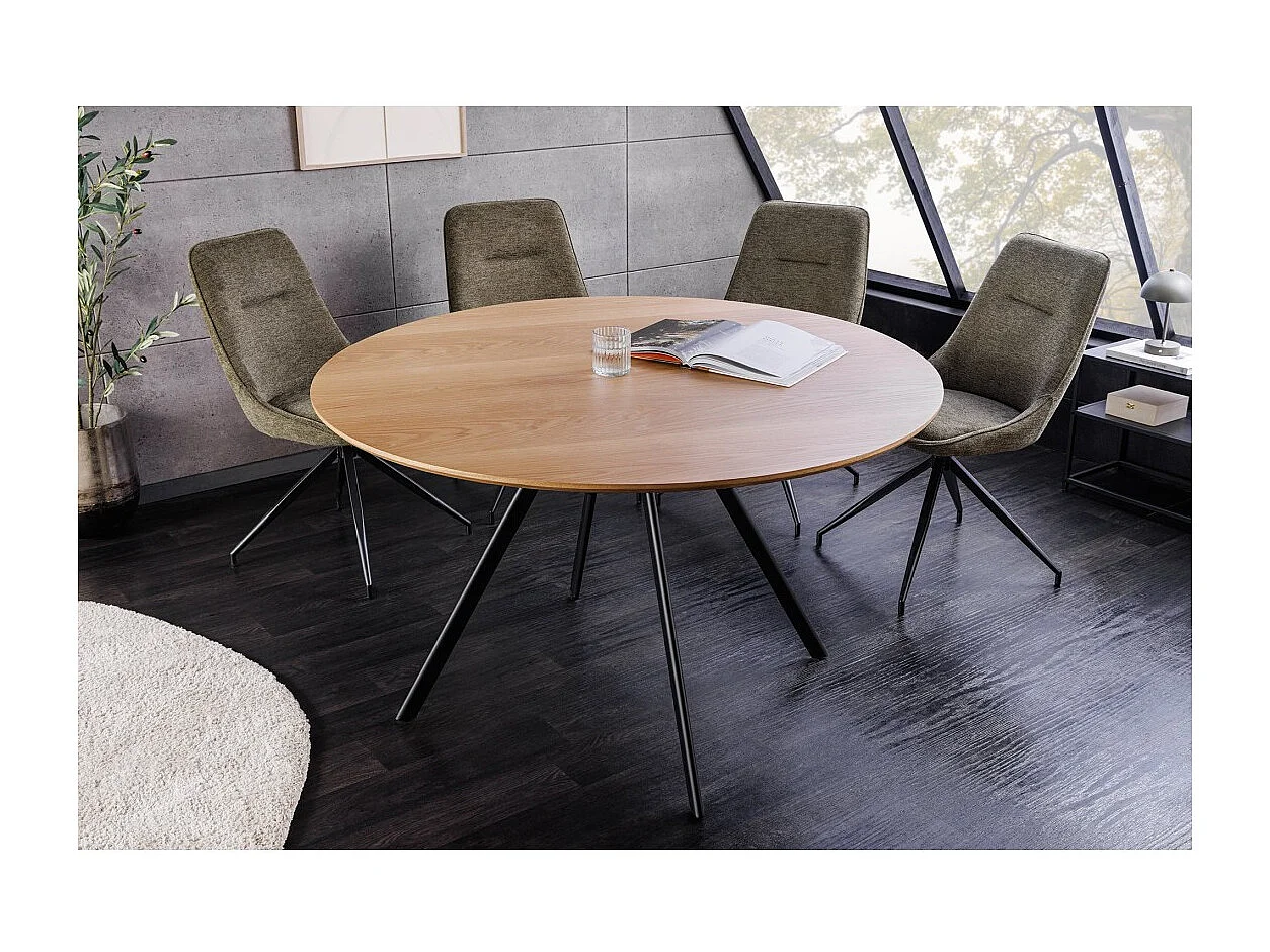 Eettafel SOREN - Eikenlook hout en metaal - 120 cm - Rond - Industriële stijl