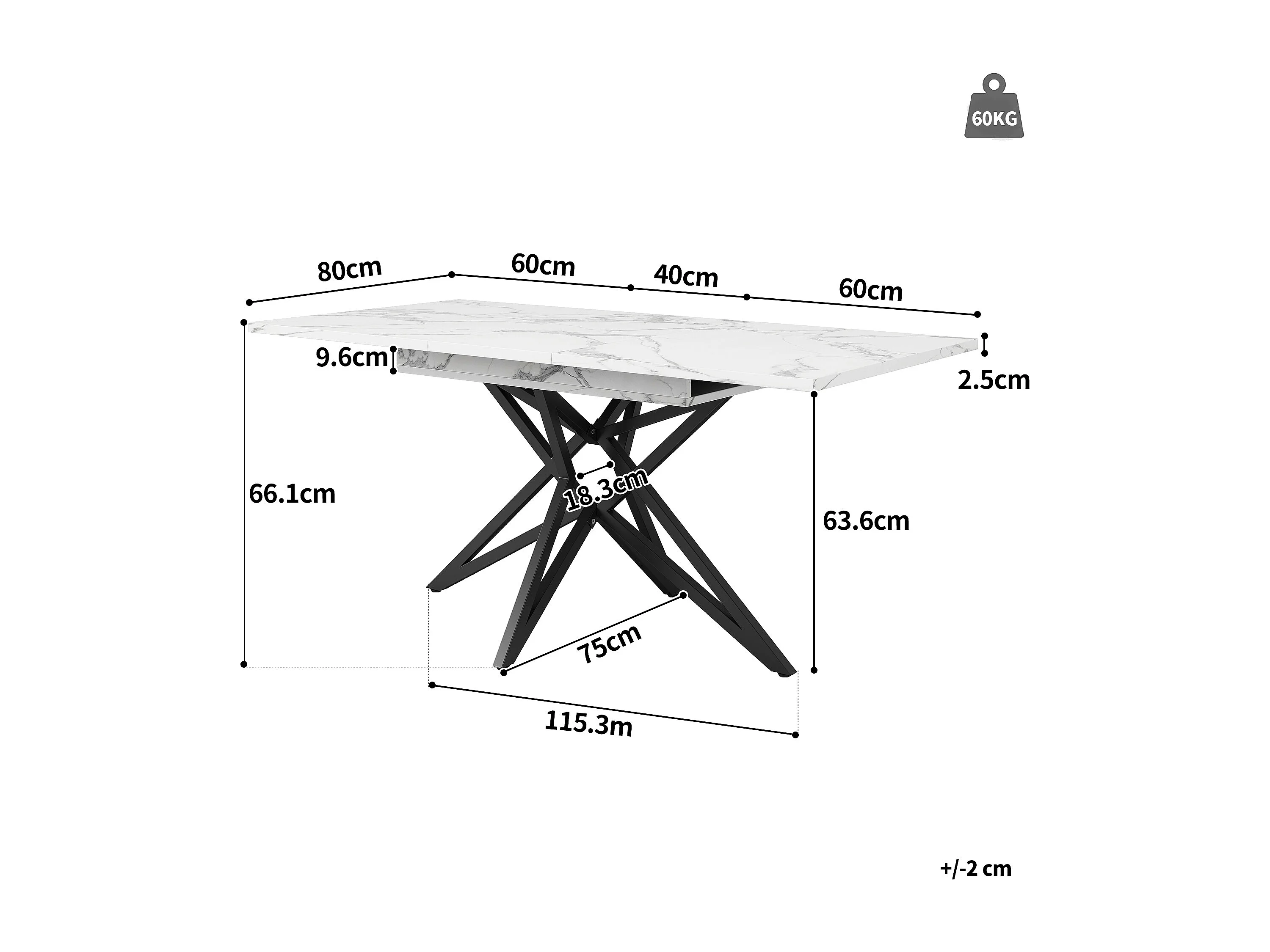 Eettafel Uitschuifbaar - Marmerlook Tafelblad - Stervormige Metalen Poten - Voor Eetkamer En Keuken - Wit - 120 160x80x66,1 Cm