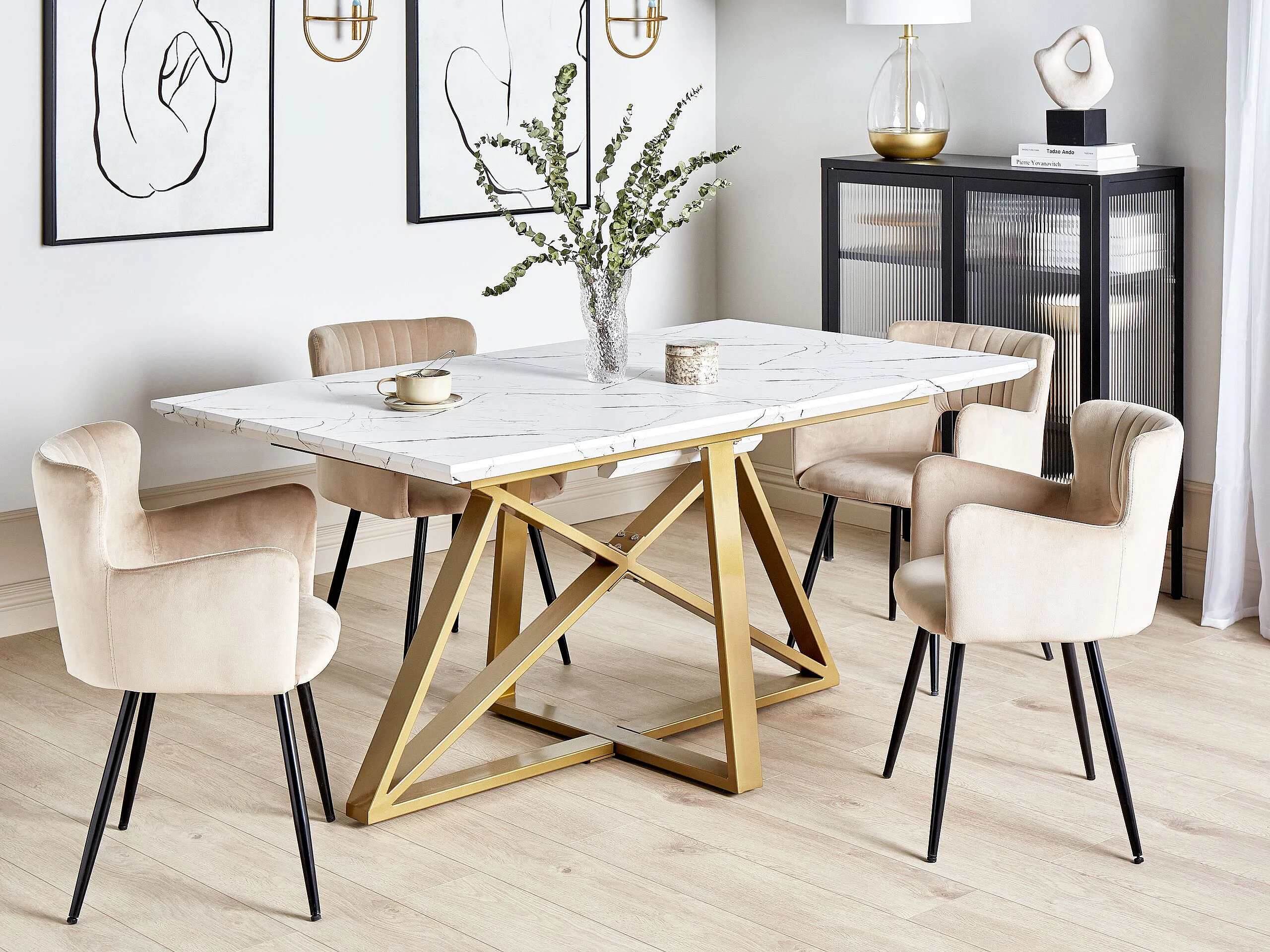 Eettafel uitschuifbaar MAXIMUS Wit marmer 160/200 cm 90 cm