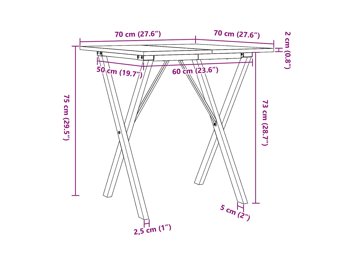 Eettafel X-frame 70x70x75,5 cm massief grenenhout en staal
