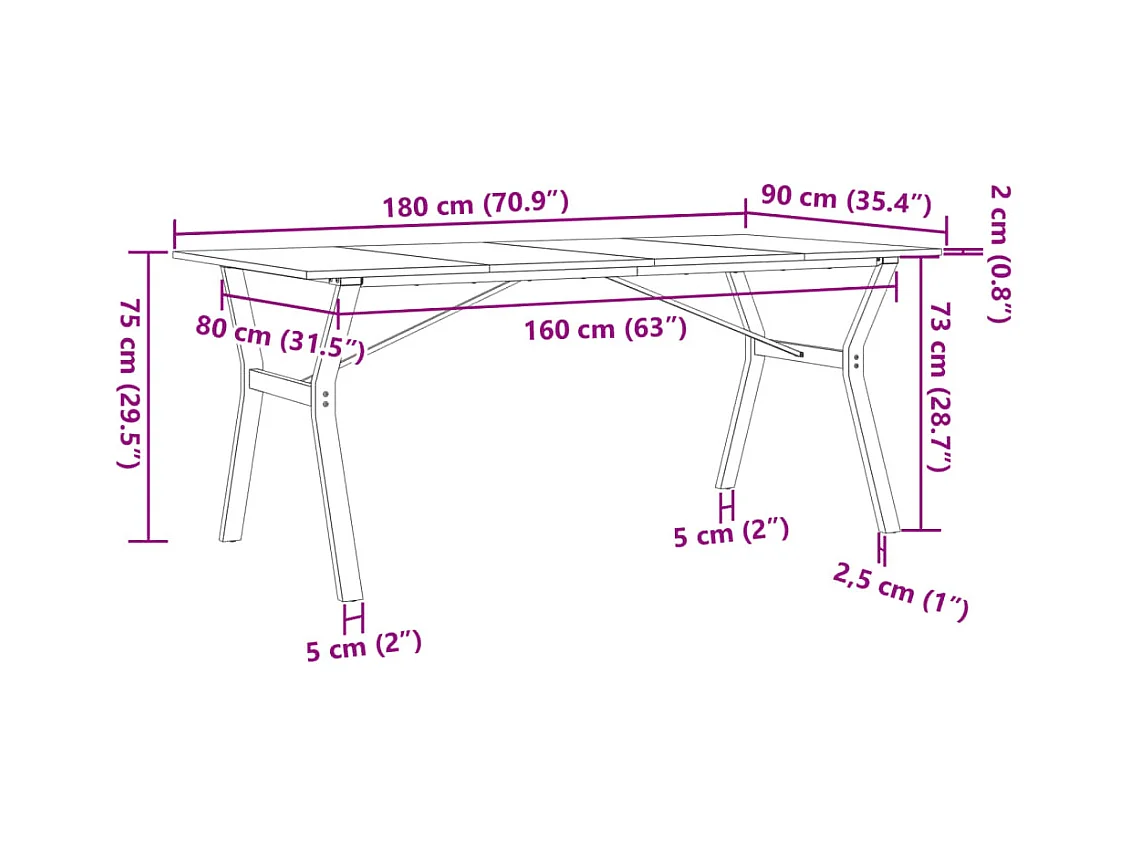 Eettafel Y-frame 180x90x75 cm massief grenenhout en staal