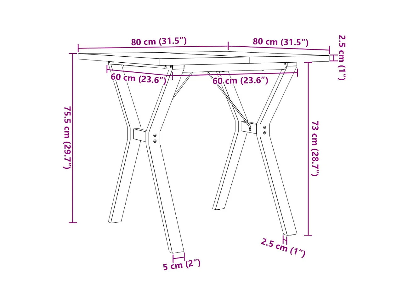 Eettafel Y-frame 80x80x75 cm massief grenenhout en staal