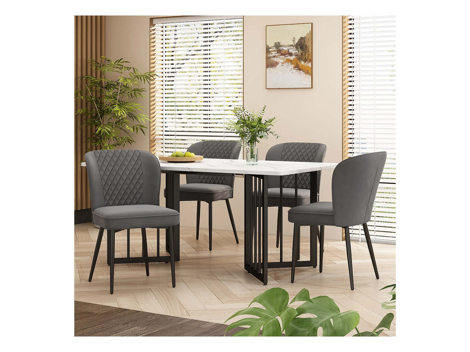Eettafelset met 4 fluwelen stoelen - MDF hout en metaal - Grijs