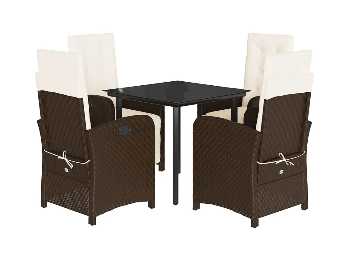 Vessira 5-delige Tuinset met kussens poly rattan bruin