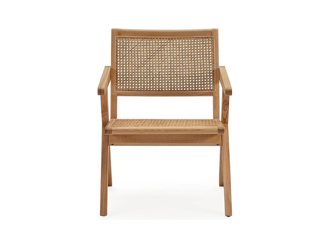 Eikenhouten fauteuil met armleuningen en natuurlijk rotan Arkin