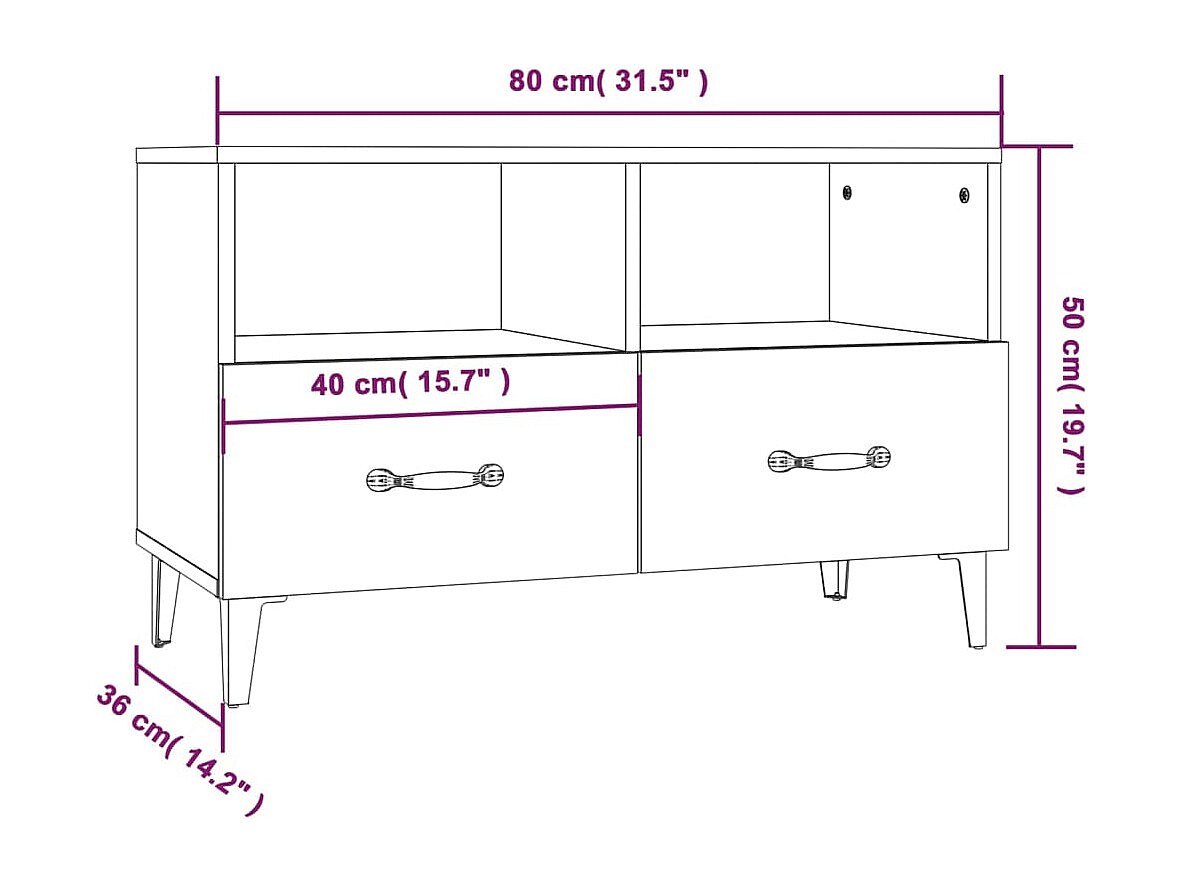 Elben Tv-meubel 80x36x50 cm bewerkt hout hoogglans wit
