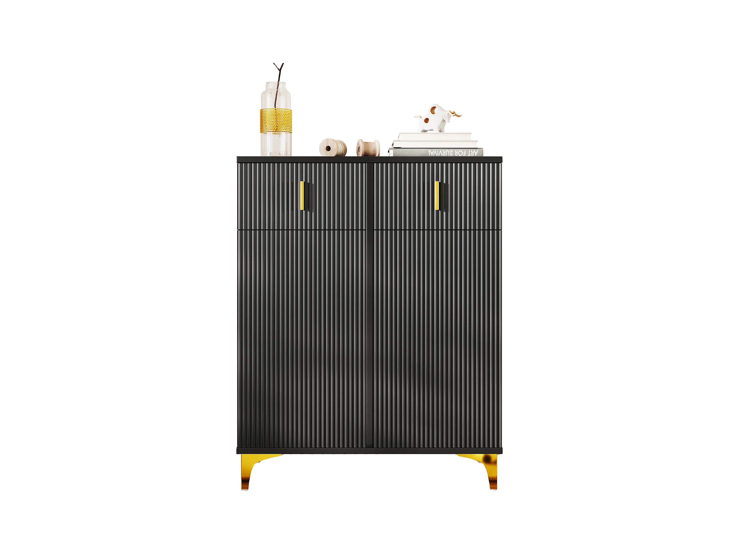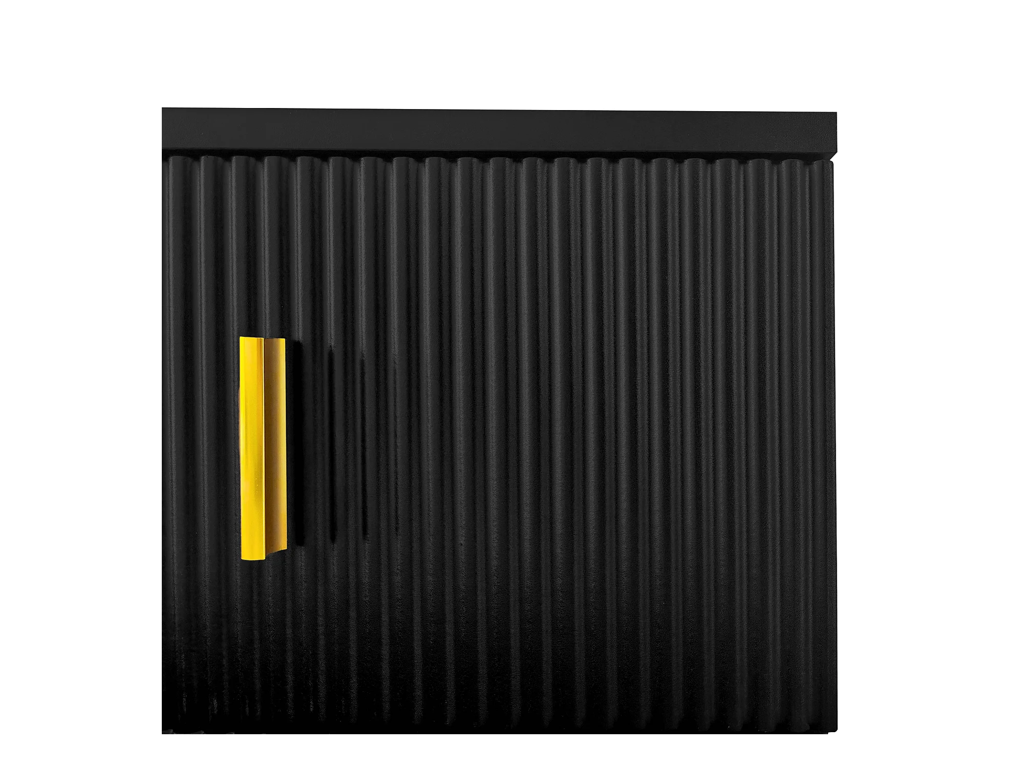 Elegant dressoir met structuurpanelen, verstelbare planken en gouden details, gemaakt van spaanplaat, zwart (83x35x101 cm)