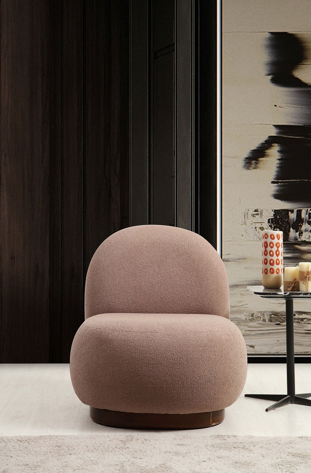 Elegante fauteuil, Cappuccinokleur, 74 x 85 x 75 cm | Frame van beukenhout en spaanplaat, 100% polyester, poten van walnoothout | Perfect om
