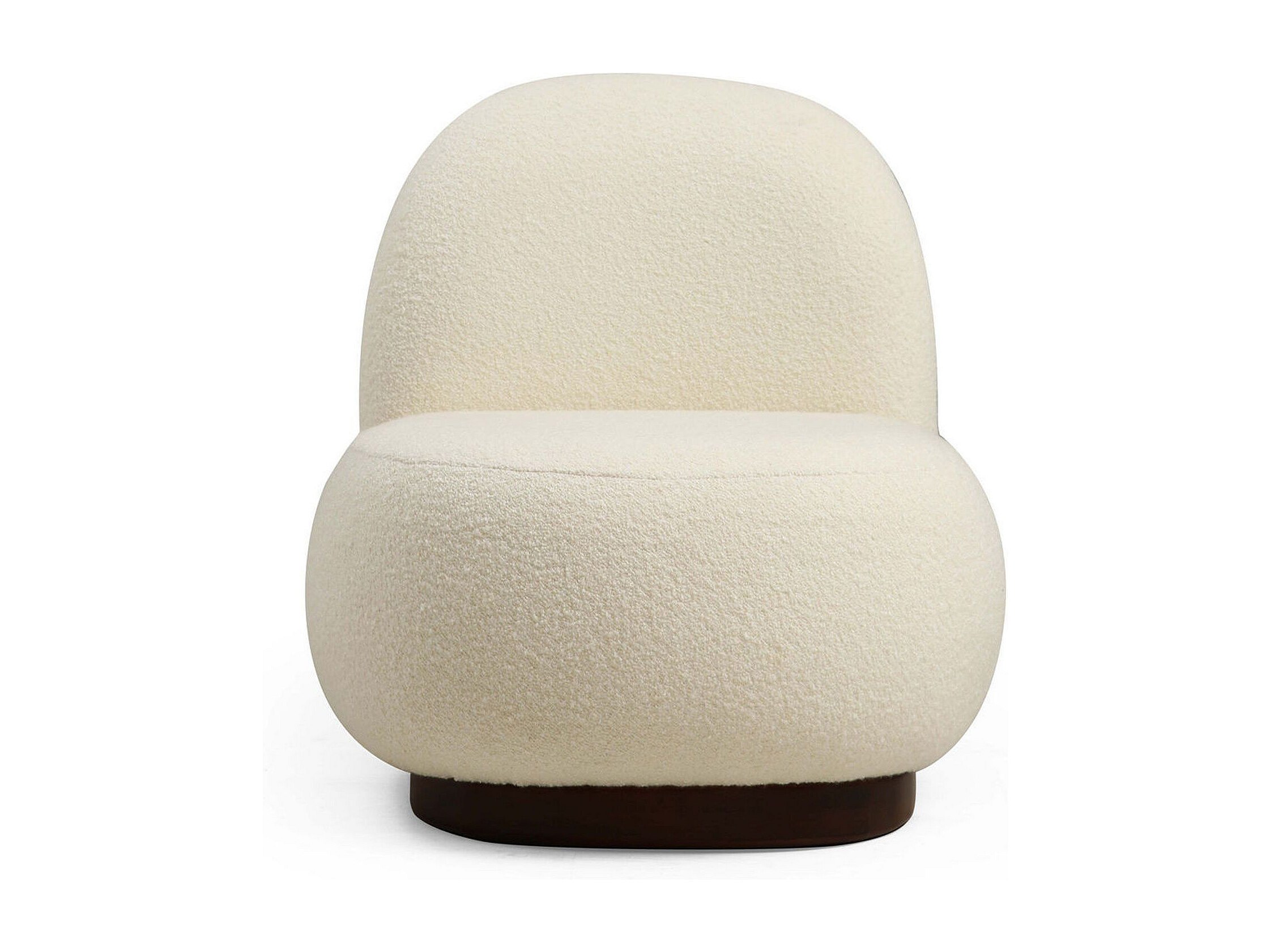 Elegante fauteuil, wit bouclé, 74 x 85 x 75 cm | Frame van beukenhout en spaanplaat, 100% polyester, poten van walnoothout | Perfect om te d