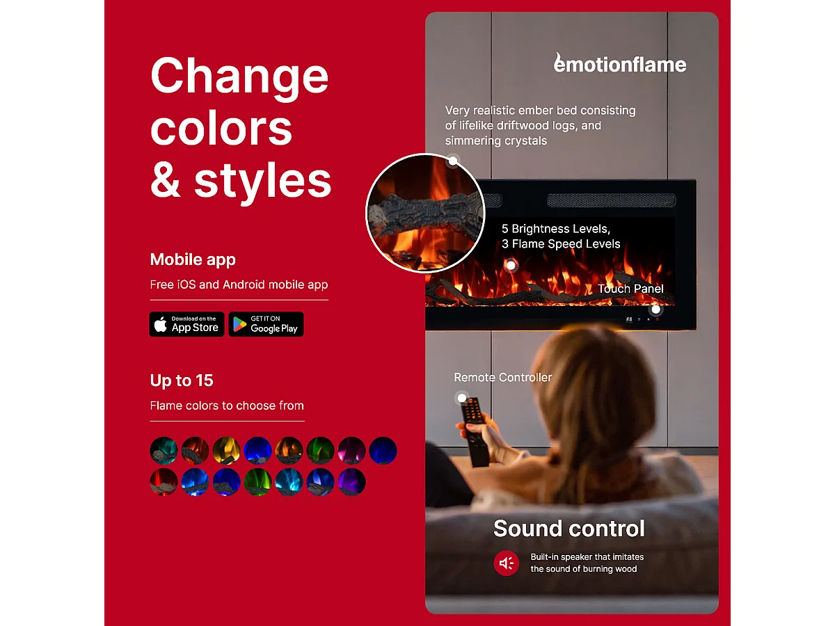 Elektrische haard MONARCH 152 - premium vlam - voor wand en inbouw - 152x13x35 cm - LED-haard met verwarming 900/1800 W