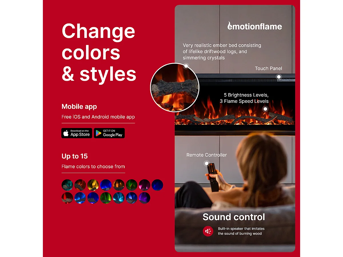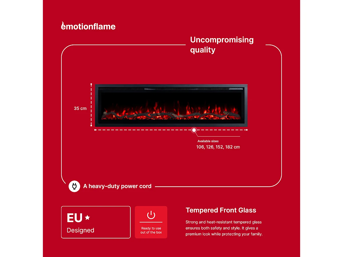 Elektrische haard REGAL 106 - premium vlam - voor wand en inbouw - 106x35x12 cm - LED-haard met verwarming 900/1800 W