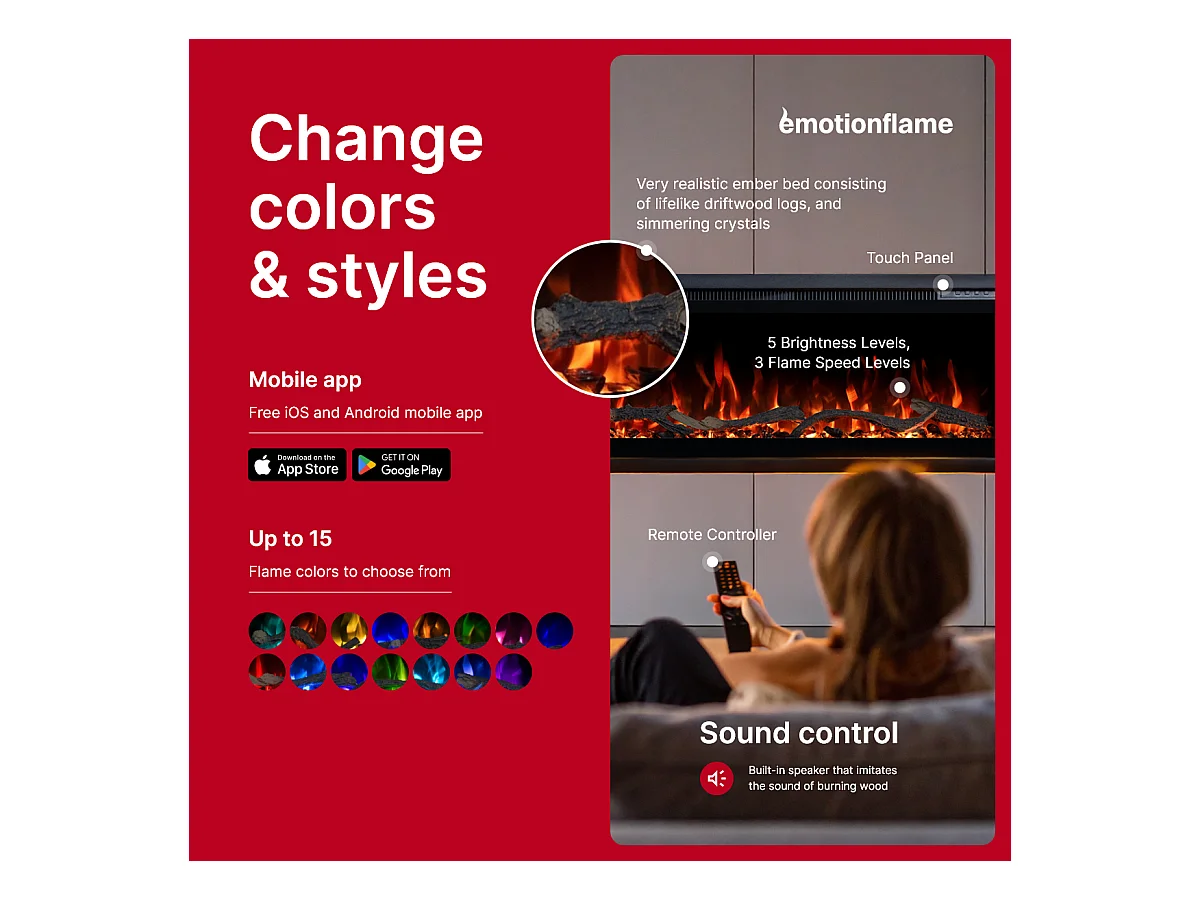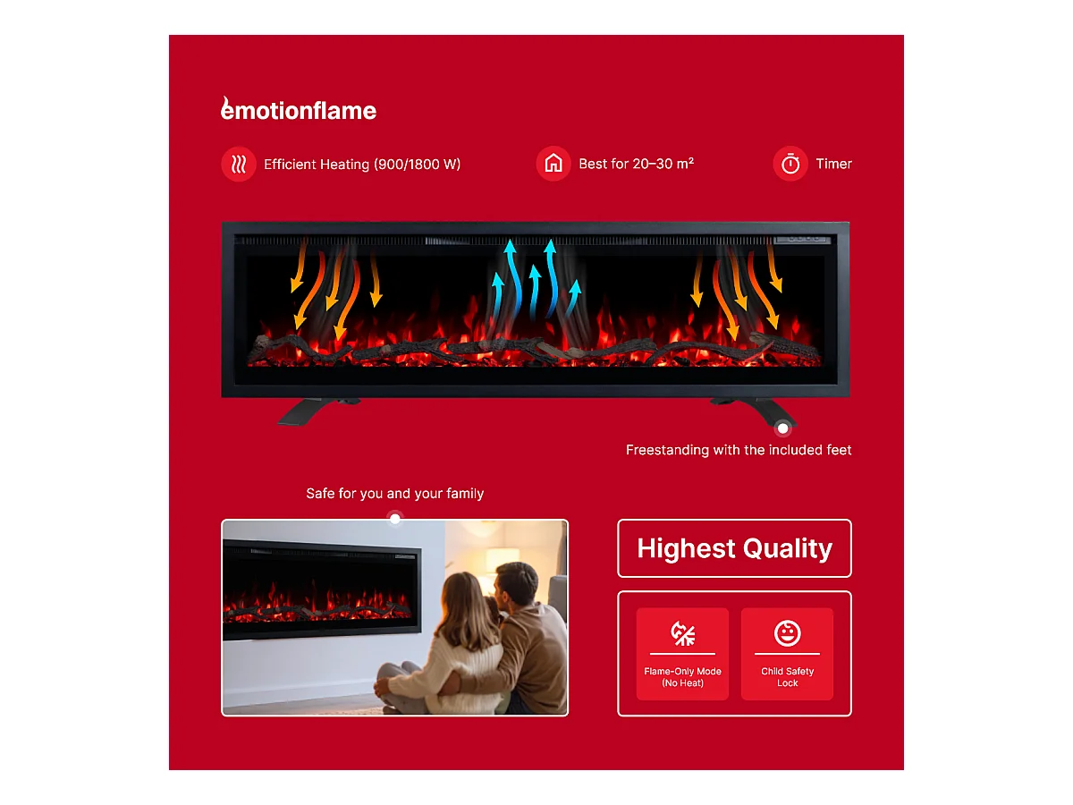 Elektrische haard REGAL 182 - premium vlam - voor wand en inbouw - 182x35x12 cm - LED-haard met verwarming 900/1800 W