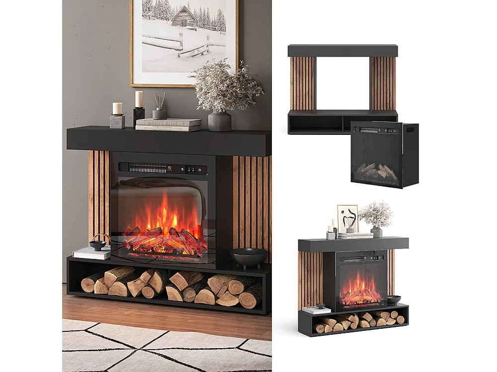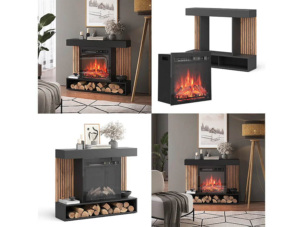 Elektrische haard zwart 100x25x80 lynea