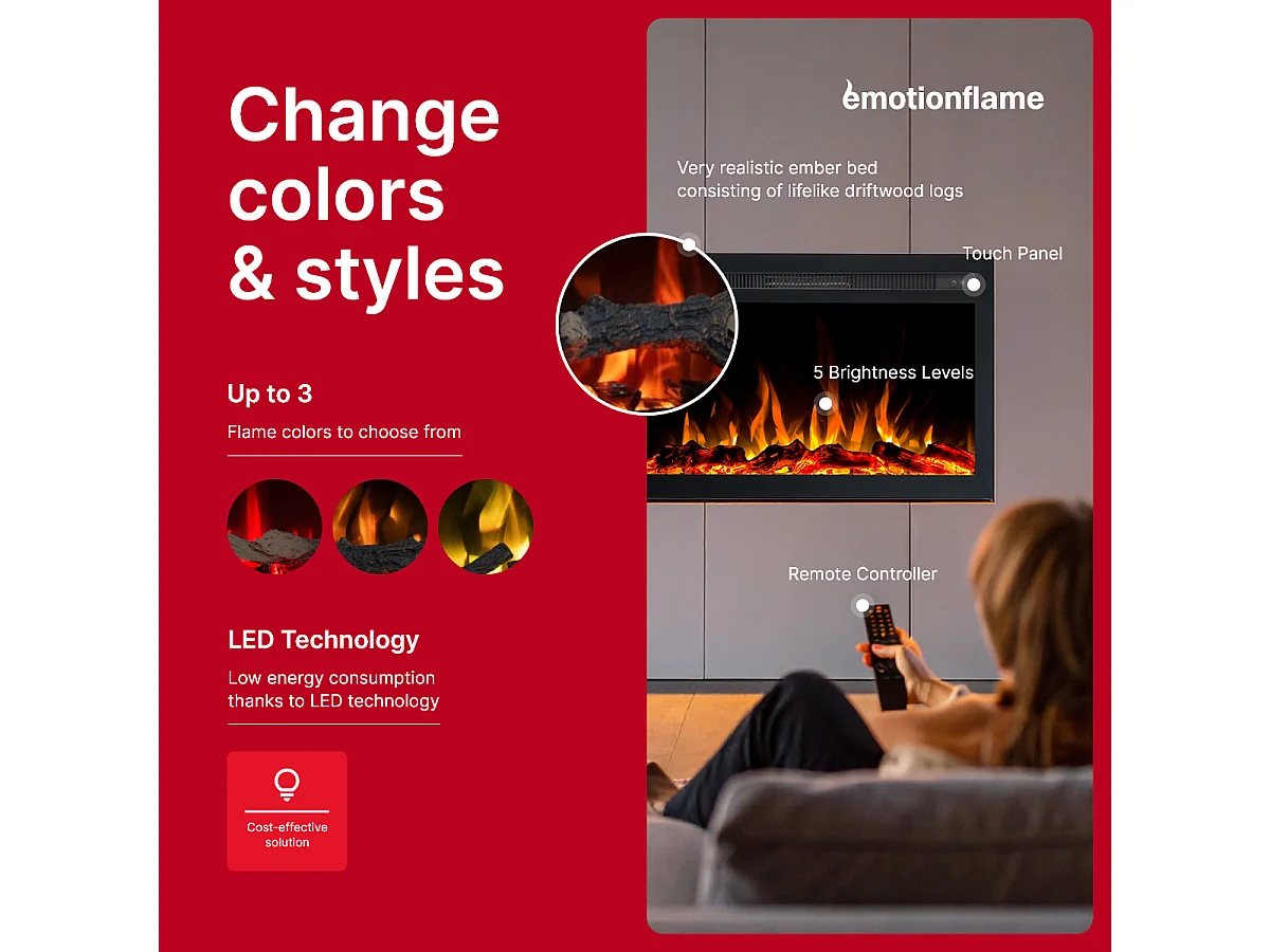 Elektrische inzethaard INFINITY - premium vlam - voor inbouw - 76x14x50 cm - LED-haard met verwarming 750/1500 W
