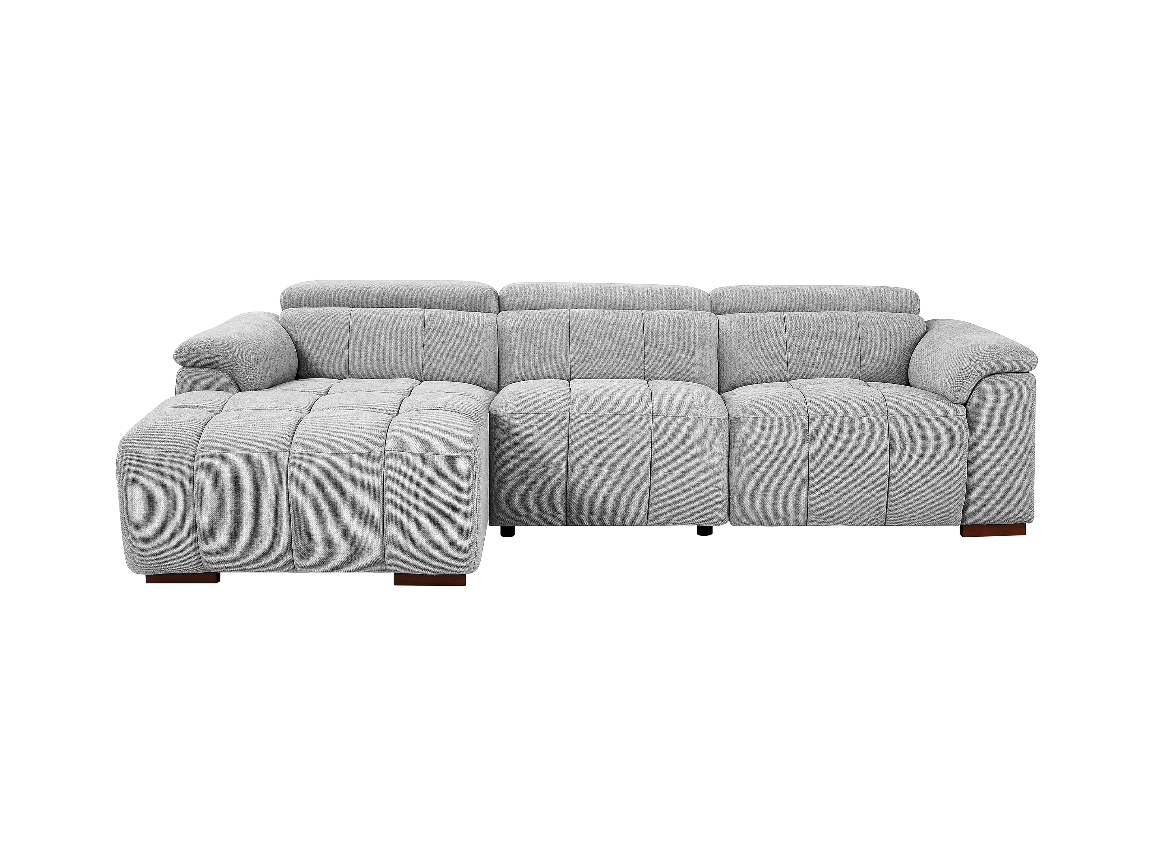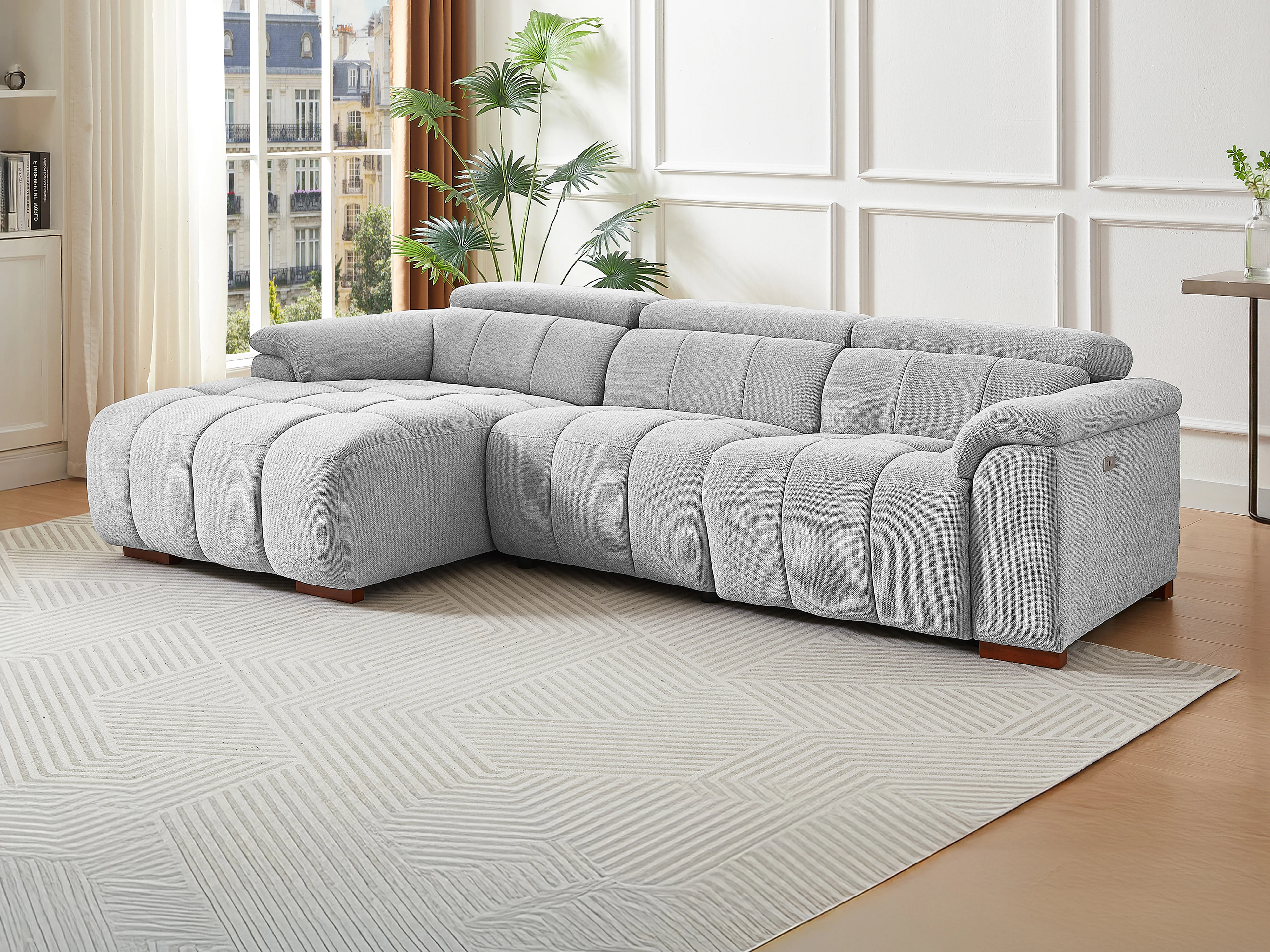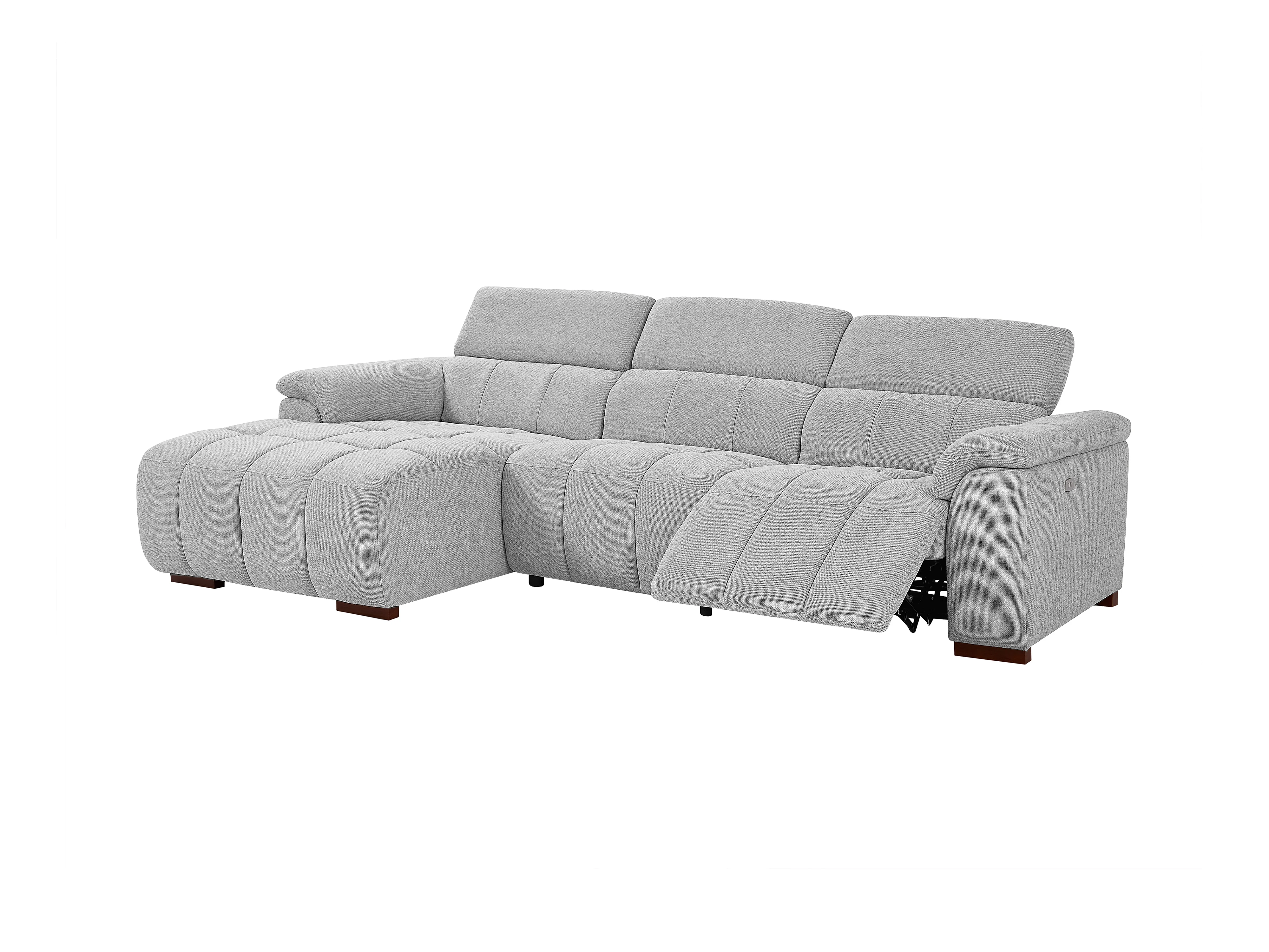 Elektrische relaxbank met linkse hoek in lichtgrijze stof MOLPICA