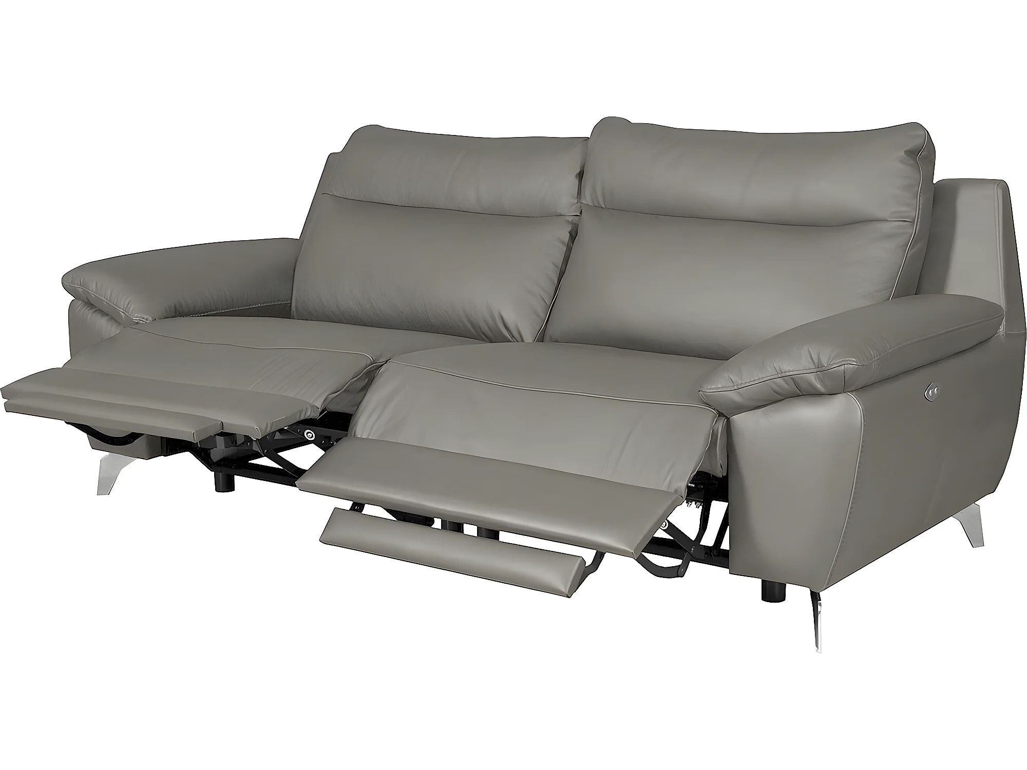 Elektrische relaxbank PERINI met 2 zitplaatsen van dik luxe Italiaans leer, grijs