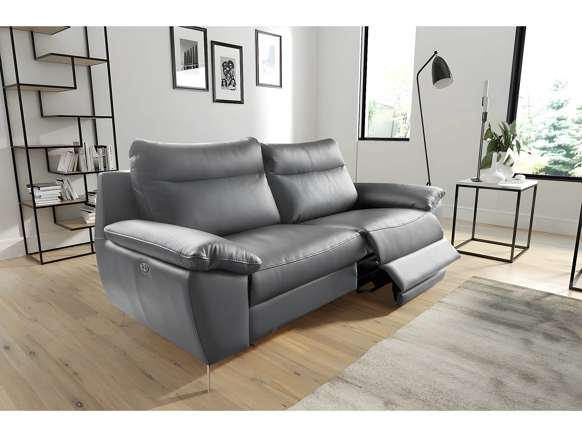 Luxe 3-zitsbank met elektrische relaxfunctie van dik Italiaans leer, PERINI, grijs