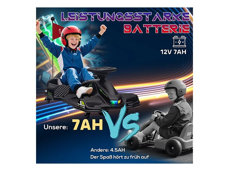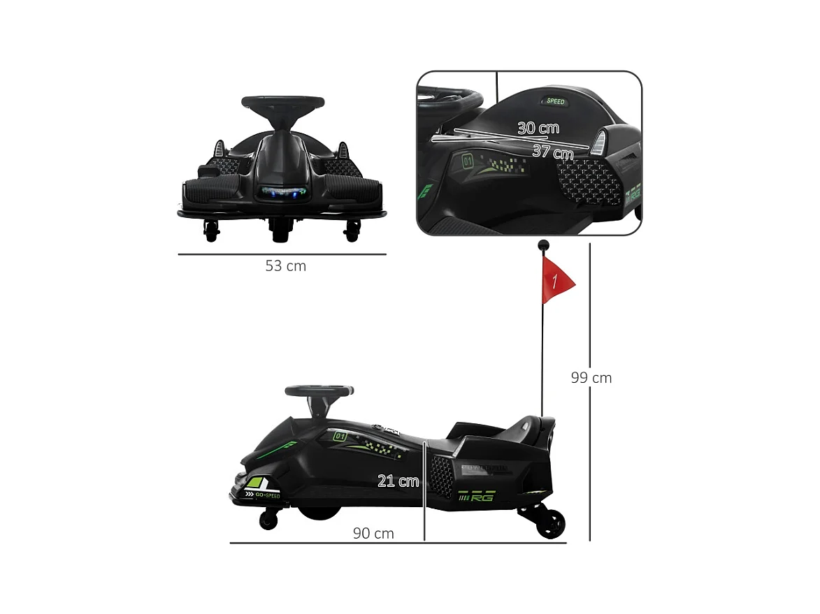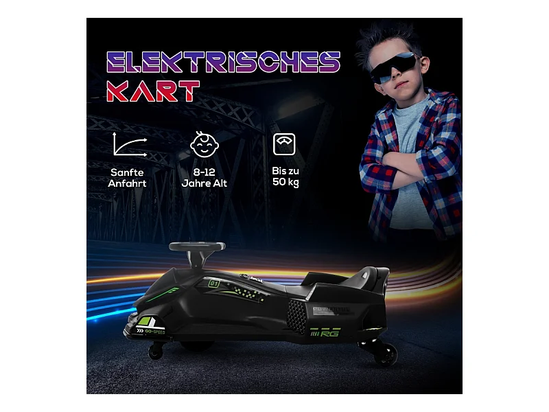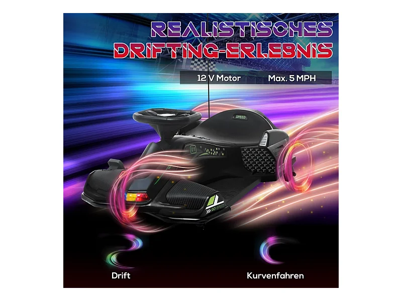 Elektrische skelter voor kinderen, met slipfunctie, rubberen banden, kunststof, zwart (90x53x99cm)