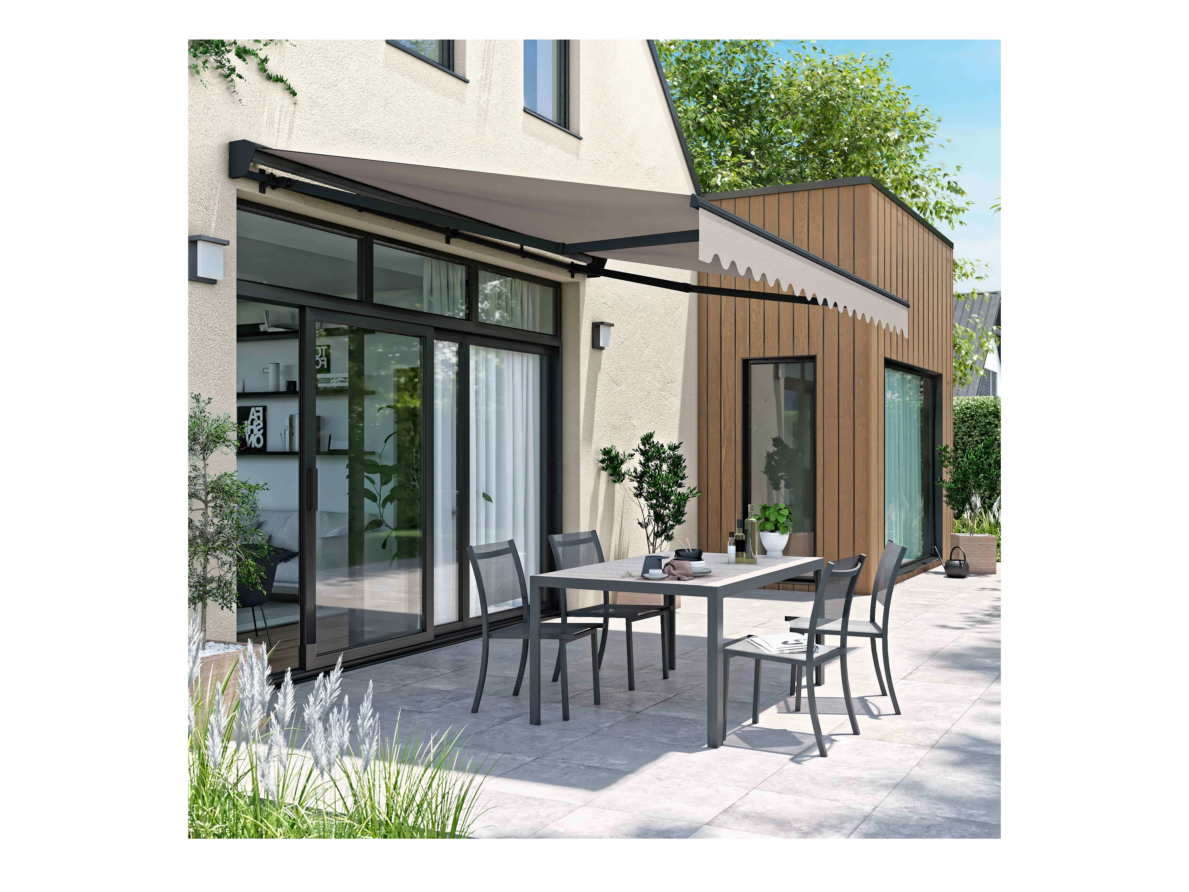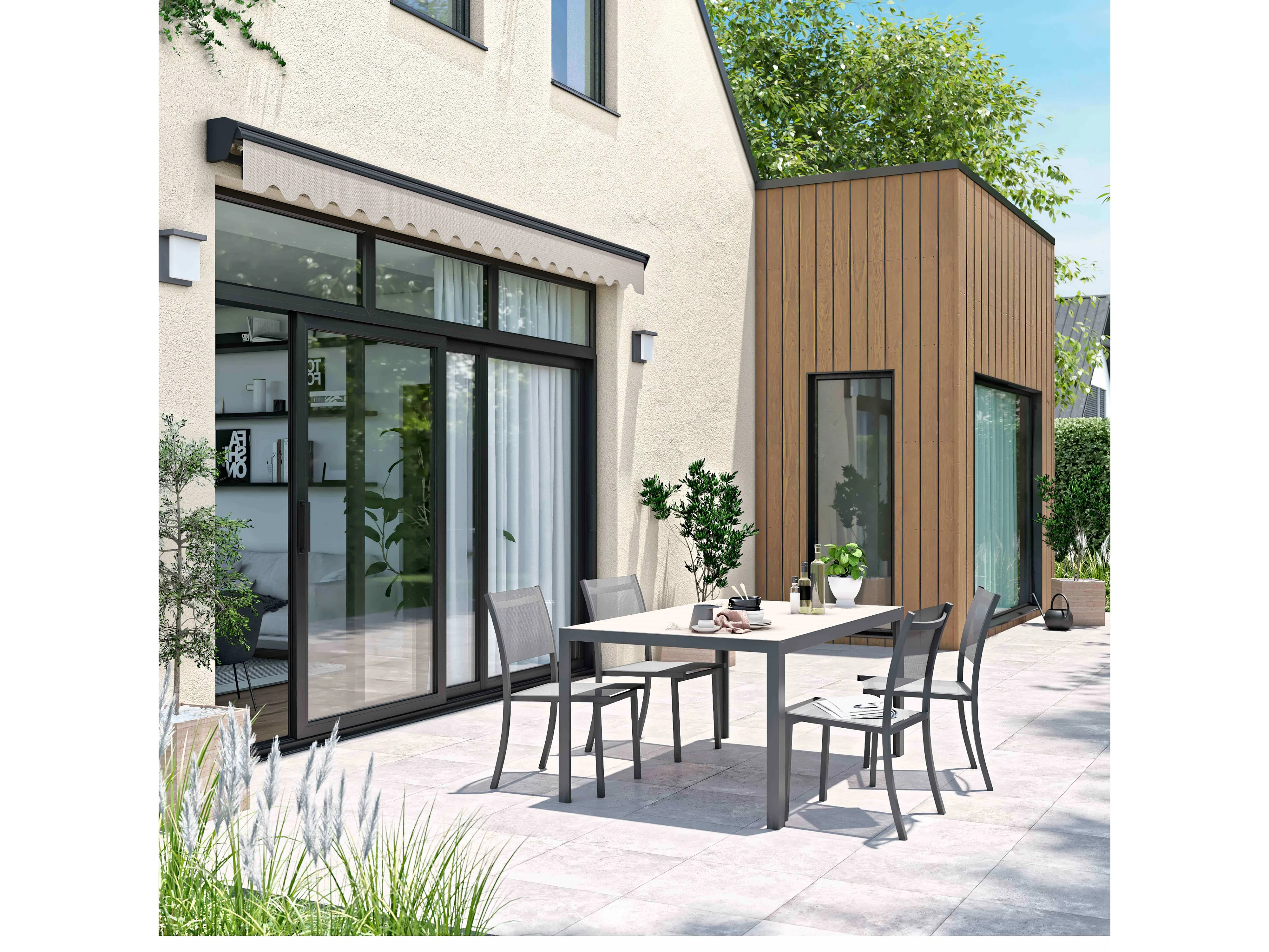 Tuineetset van aluminium: een verlengbare tafel L170/240 cm en 4 opstapelbare fauteuils - Antraciet - LOTTYS van MYLIA