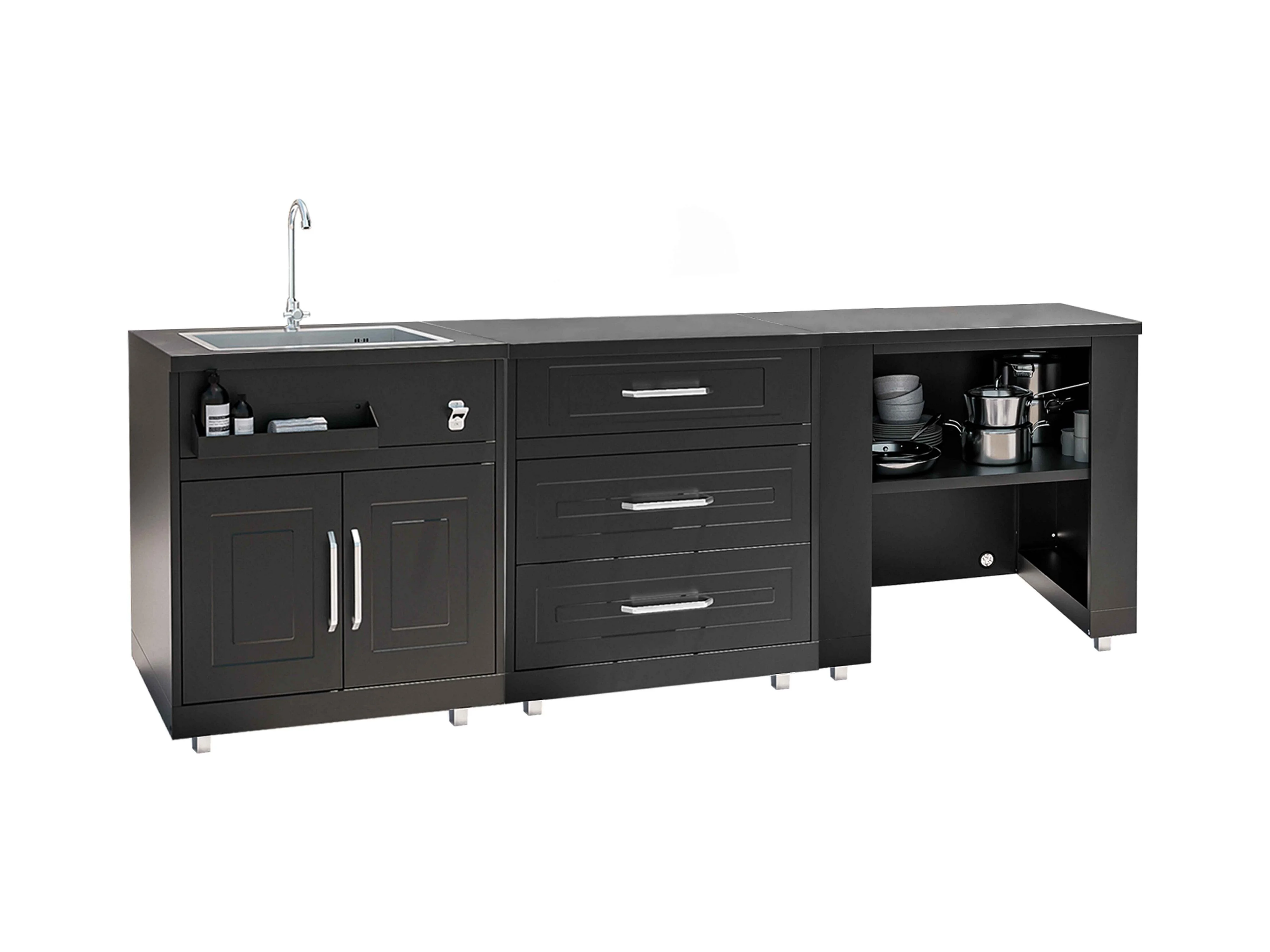 elementen buitenkeuken met zwarte spoelbak