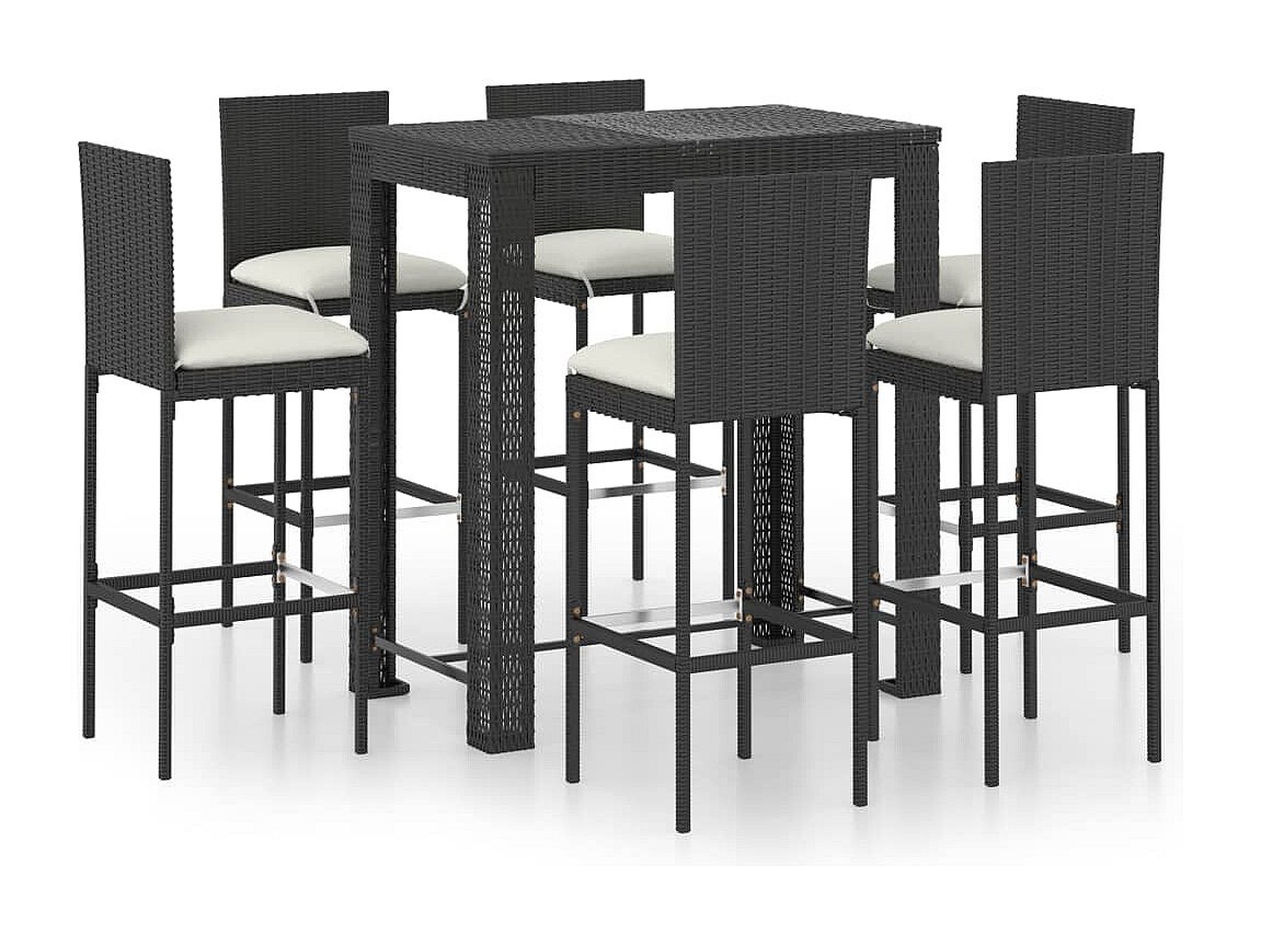 Elk City 7-delige Tuinbarset met kussens poly rattan zwart